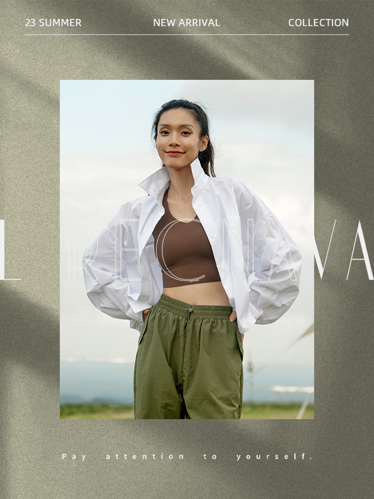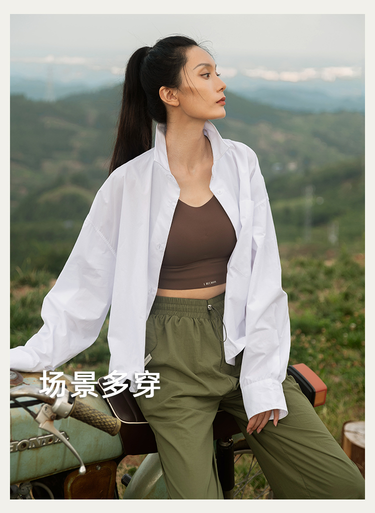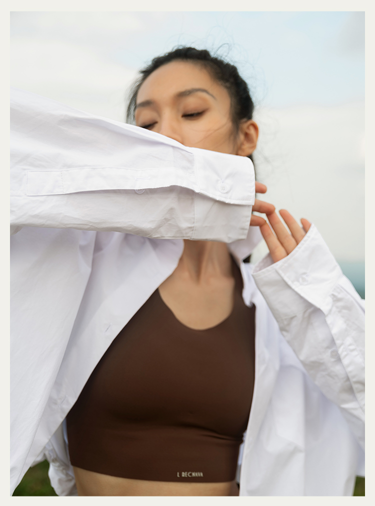 【棉氨面料】轻盈柔软 透气排汗 不对称镂空罩衫 不带胸垫运动背心