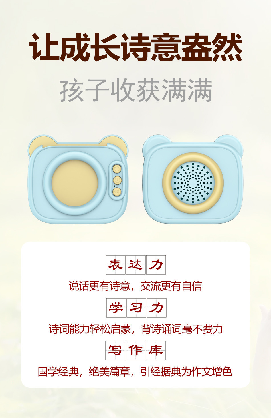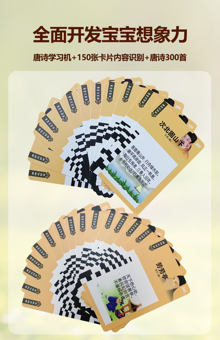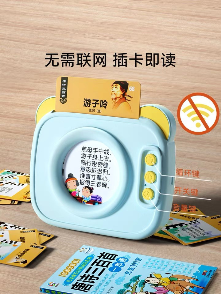 ✅无需联网,插卡即读,内置芯片。让小朋友爱上学习真人发音,边玩边学,汇集儿童必学的300首唐诗句子三百首。朗朗上口,每天坚持积累,学习更快一步。
