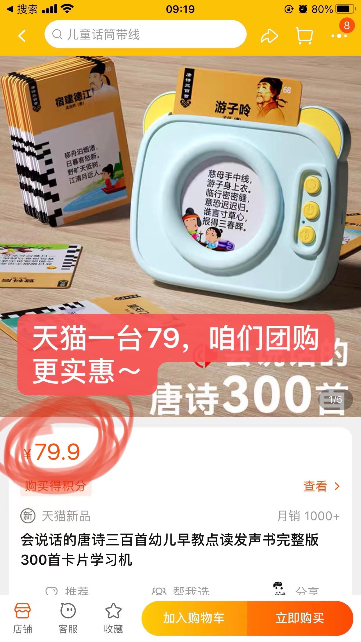 今天给大家推荐的这款便宜又实用、体积小、方便操作的一一唐诗句三百首卡片早教机!!