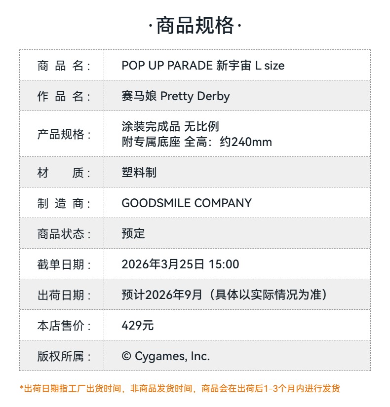 【GSC预售定金】POP UP PARADE 新宇宙 L size 手办模玩 赛马娘 Pretty Derby