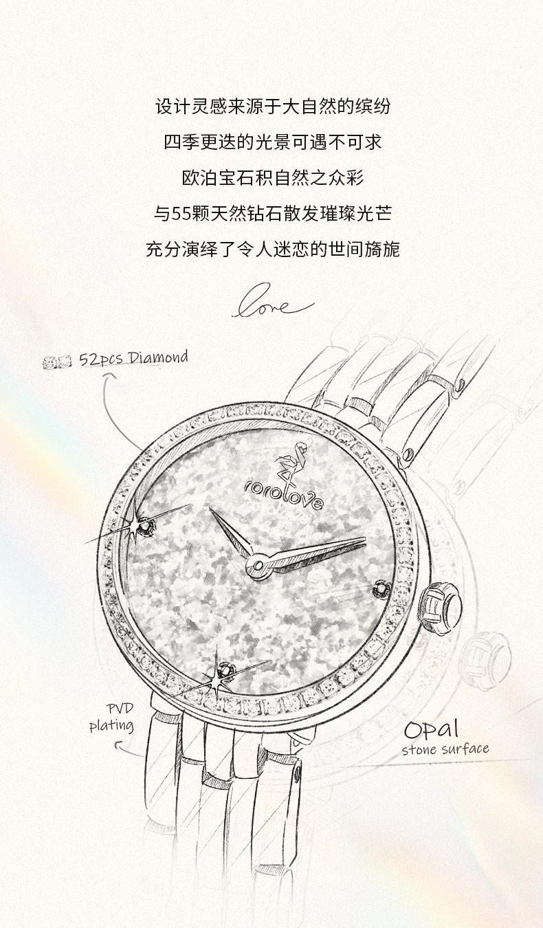 【ROROLOVE】邂逅Enchanted系列 天然钻石腕表 天然钻石手表女轻奢正品女表情人节礼物(55颗天然钻石)