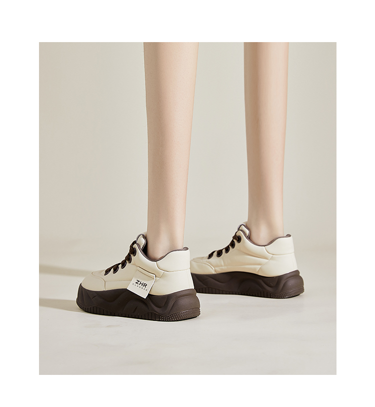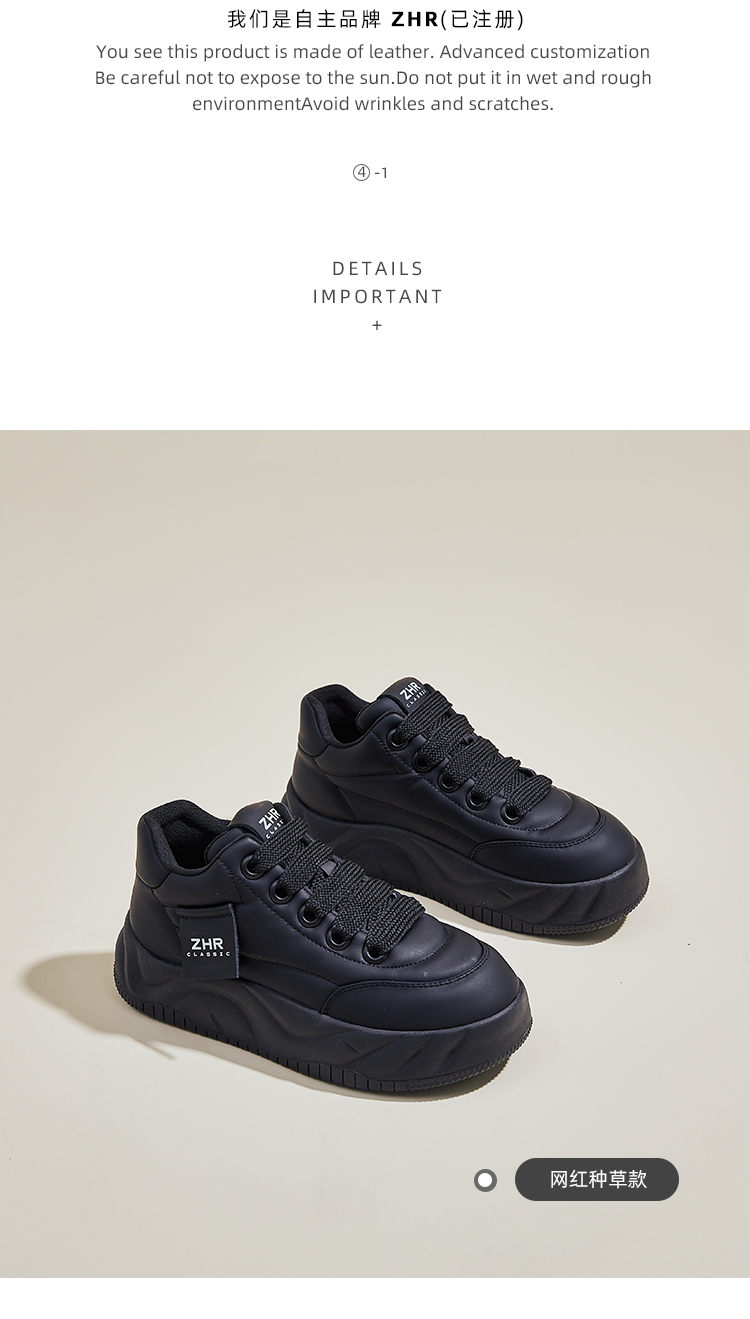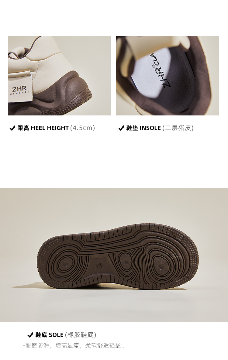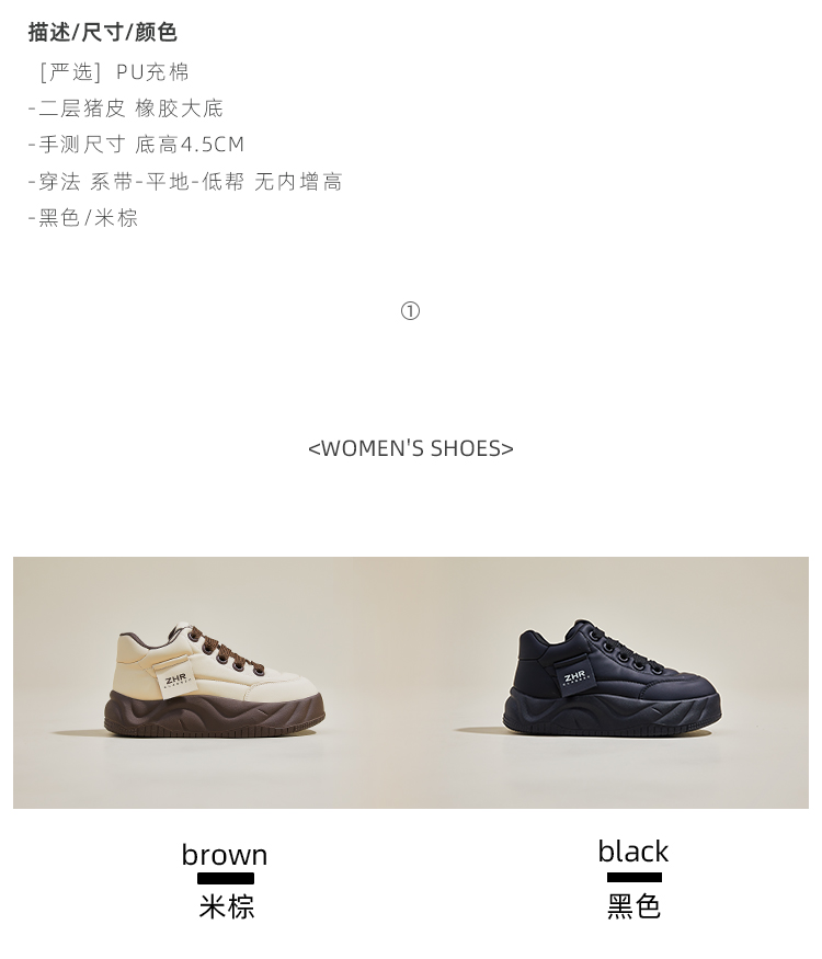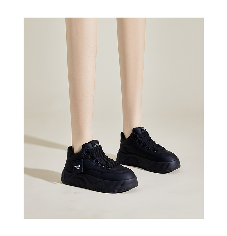 ZHR板鞋女2024春季新款复古简约潮流百搭软嘭厚底舒适面包休闲鞋
