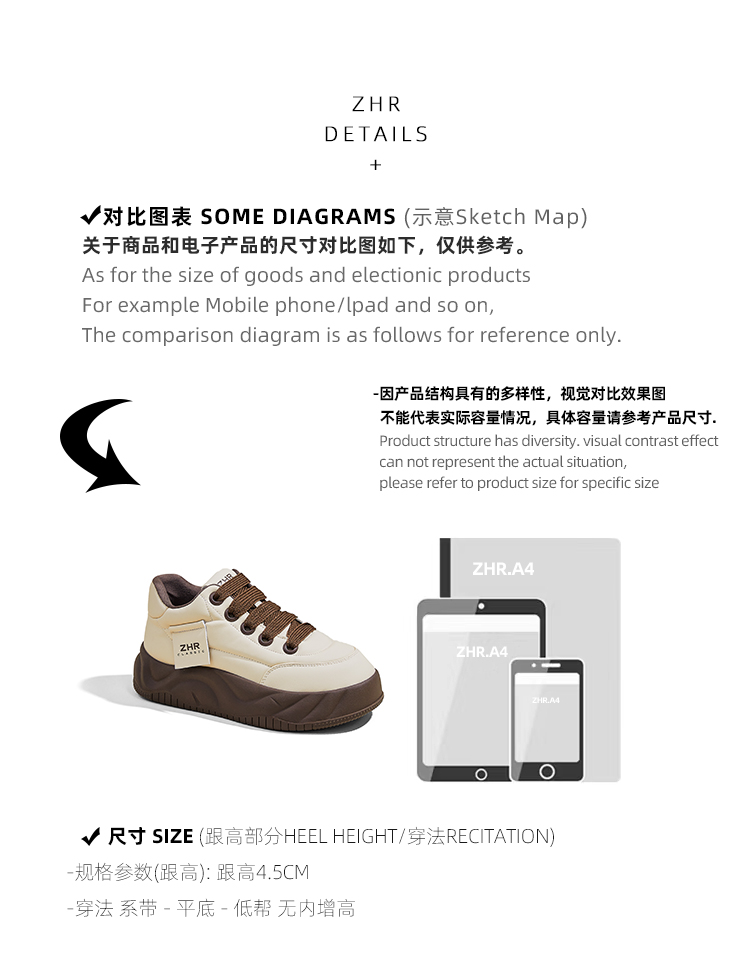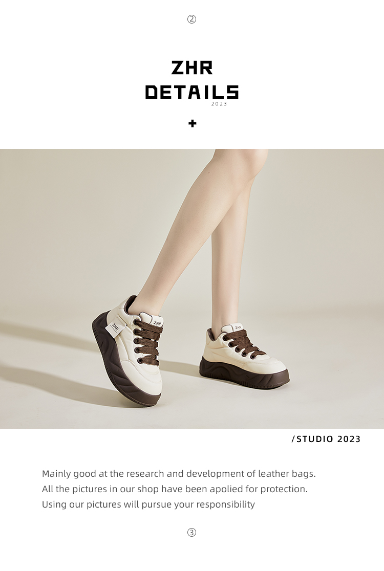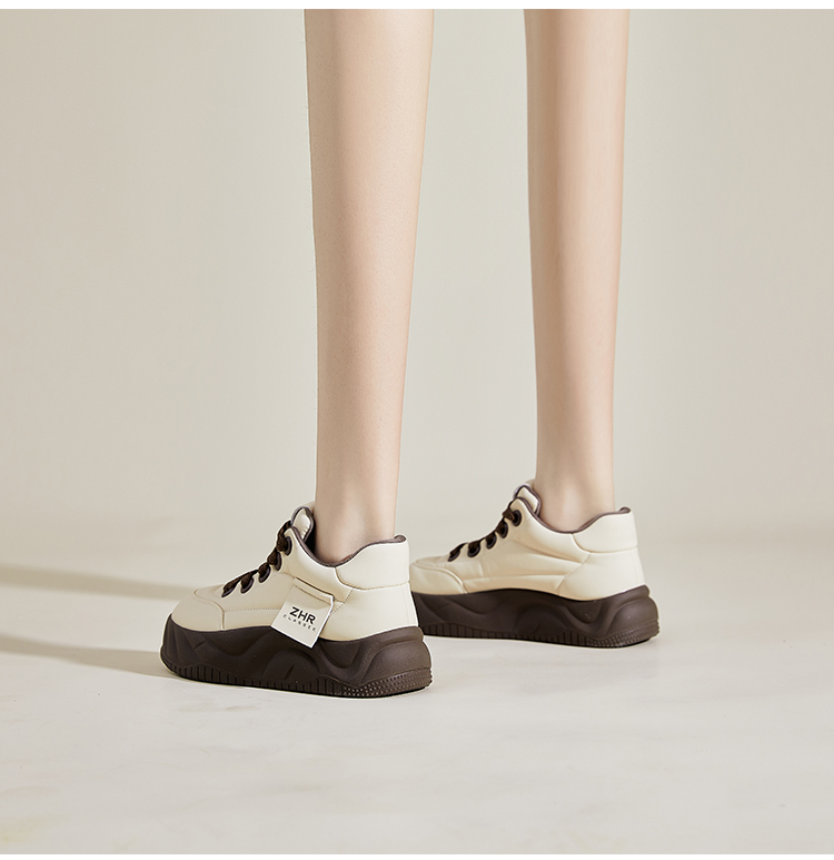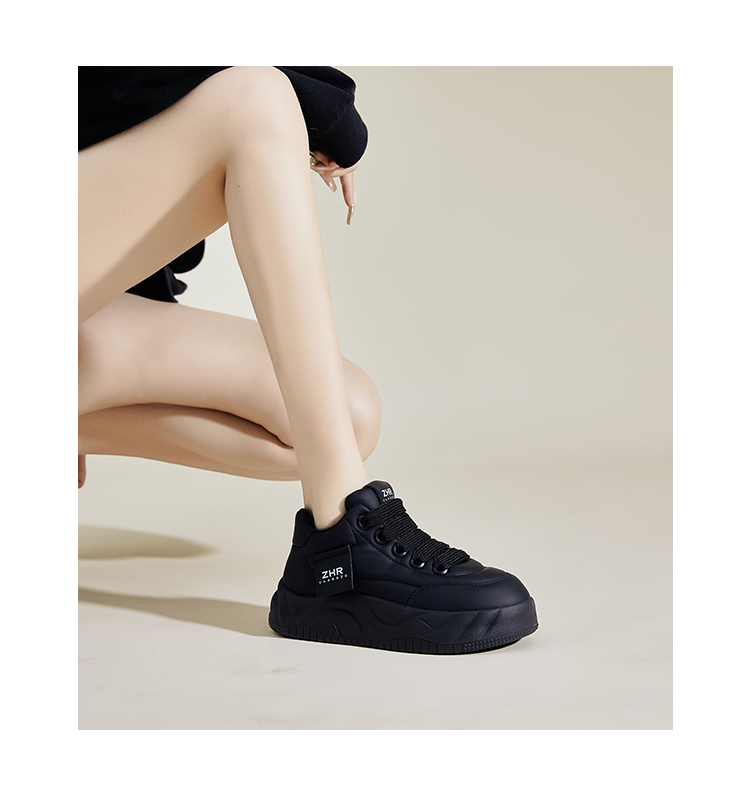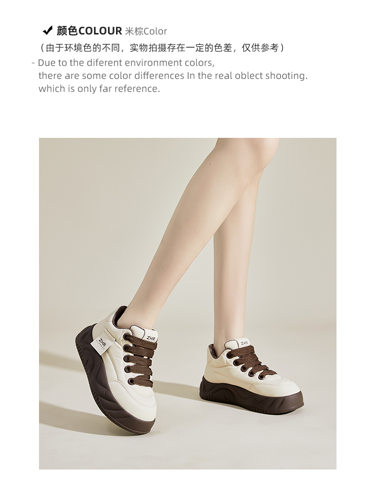ZHR板鞋女2024春季新款复古简约潮流百搭软嘭厚底舒适面包休闲鞋