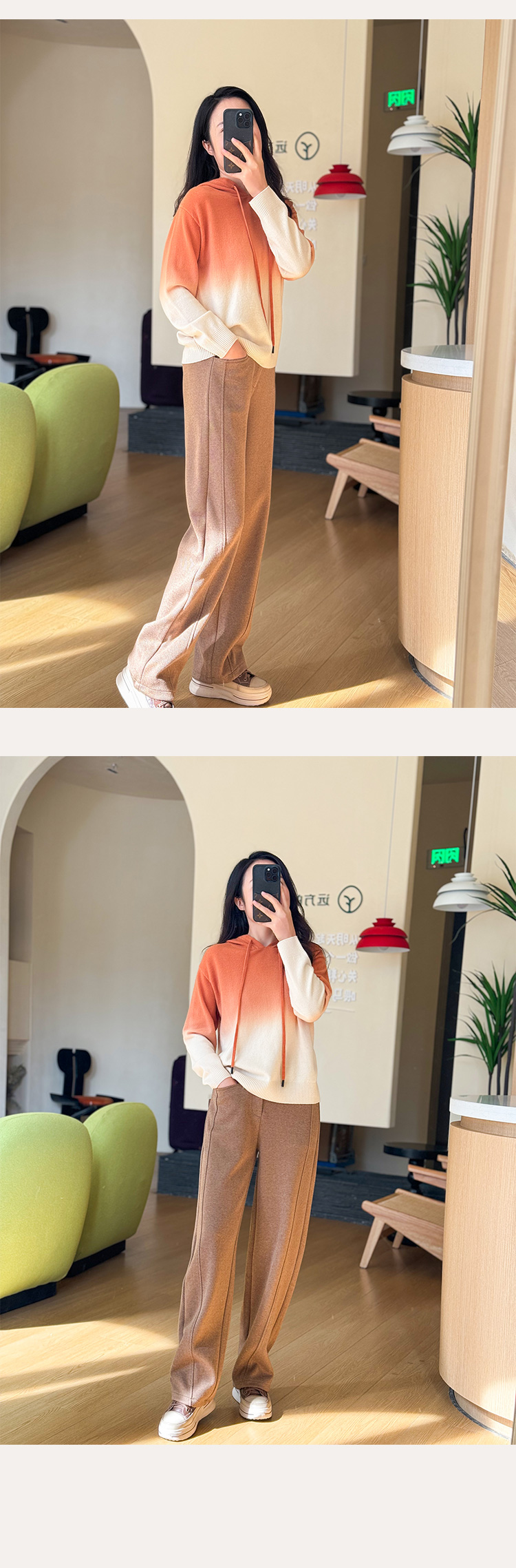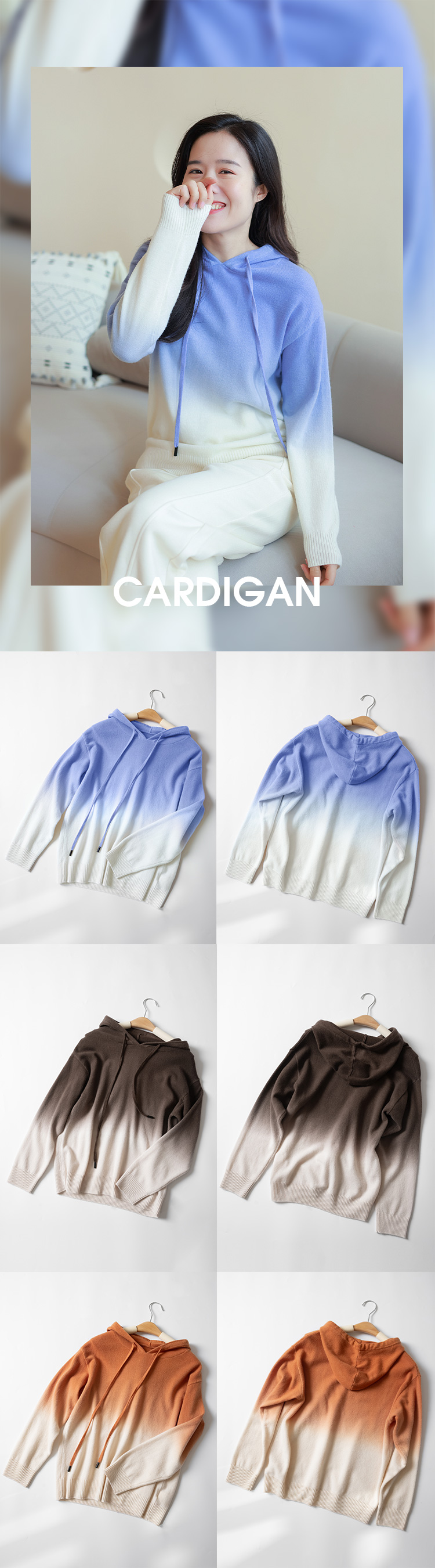 【回馈粉丝】100%羊毛秋冬新款美拉德软糯慵懒风渐变色帽衫