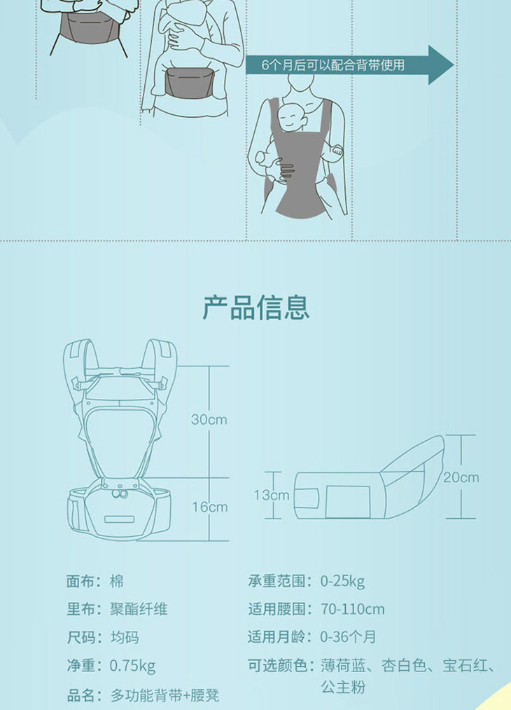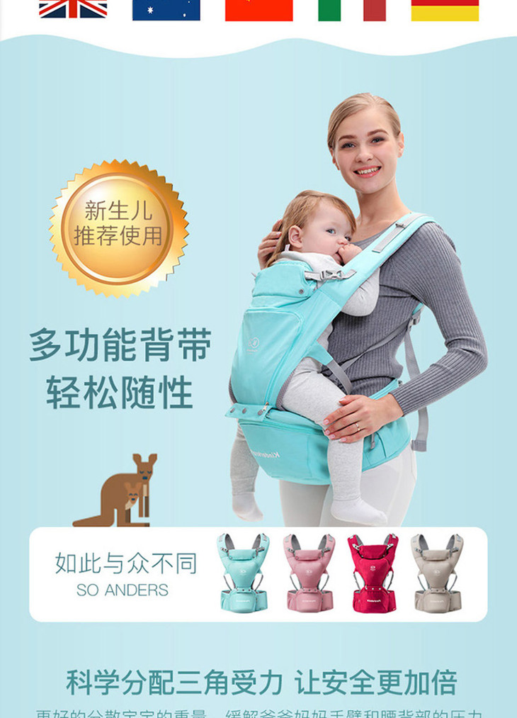 (K-4)婴儿背带多功能四季通用轻便坐凳腰凳抱娃宝宝前抱式初新生儿
