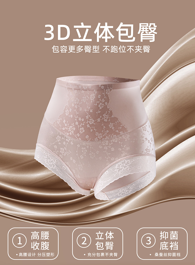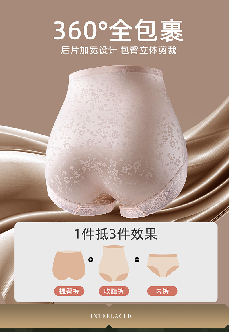 【1件抵3件】MIVECION 宫廷繁花10A养护收腹裤 高颜值 蕾丝缎面料 轻柔透气 不夹pp 360°全包裹 后片加宽设计立体包臀 高腰设计 分压塑形 桑蚕丝抑jun裆