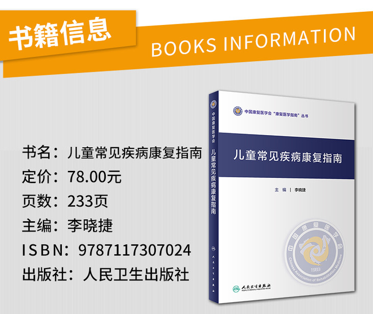 书名:儿童常见疾病康复指南 定价:78.0 ISBN:9787117307024 作者:李晓捷 版次:1