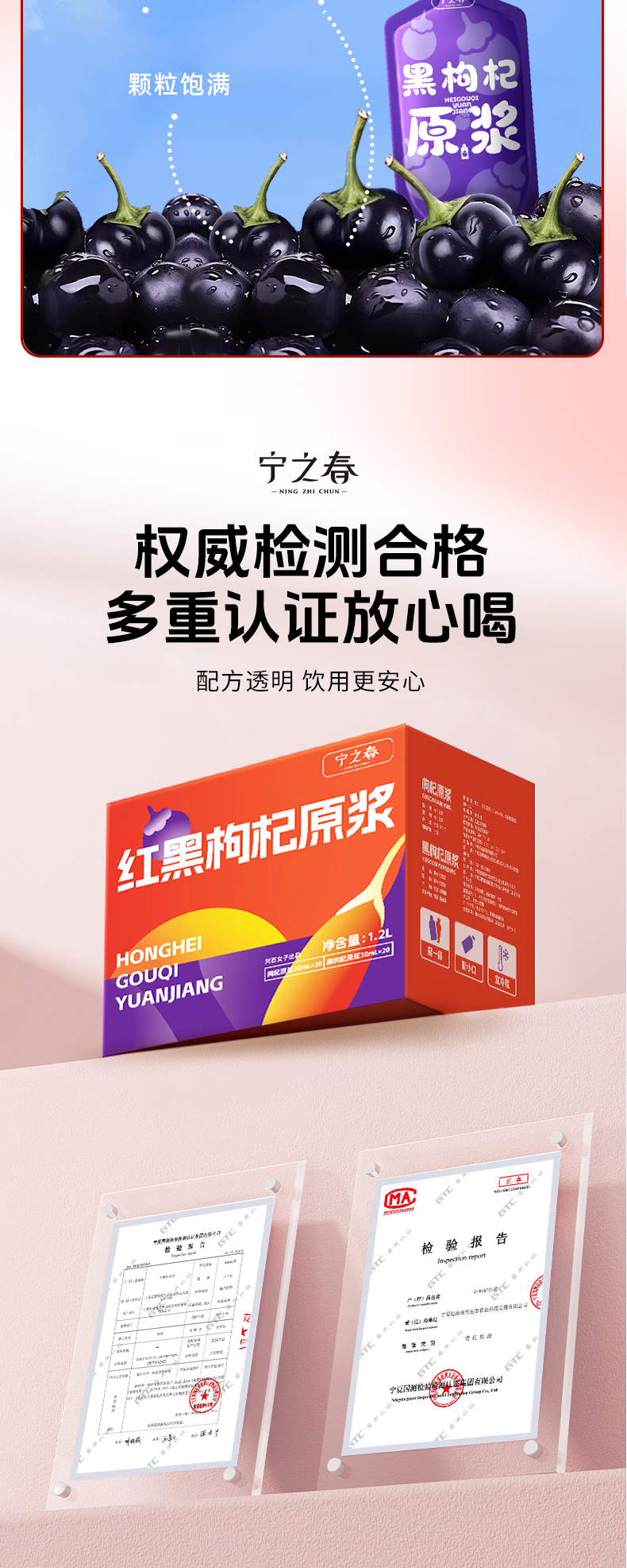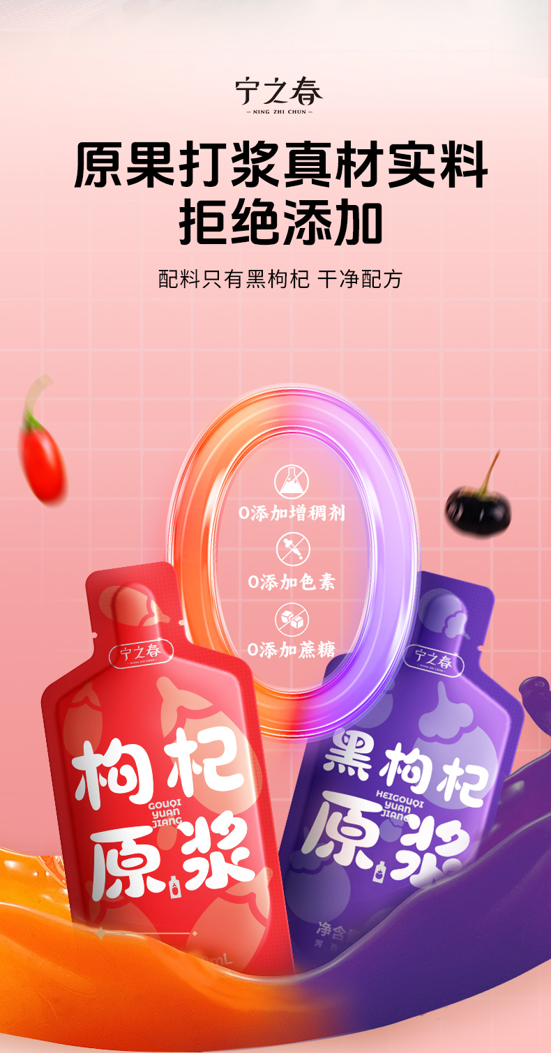 宁之春 枸杞原浆 红黑原浆组合1200ml*1盒 黑红各20袋