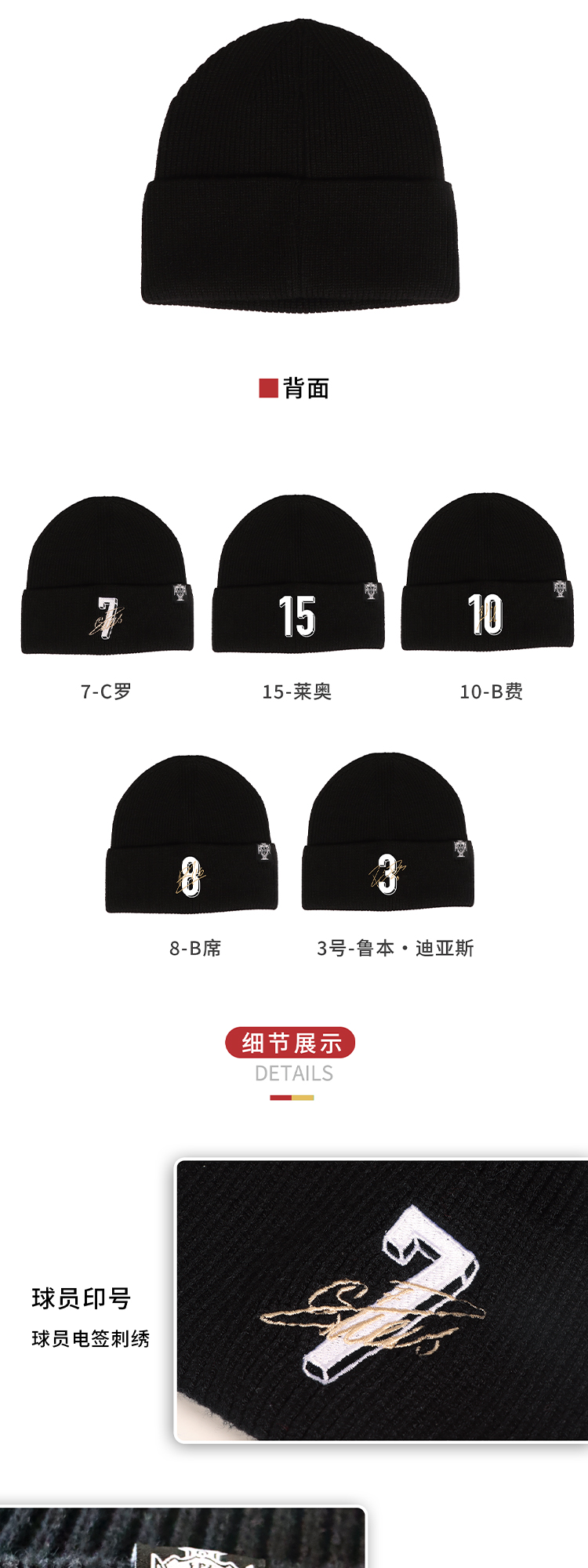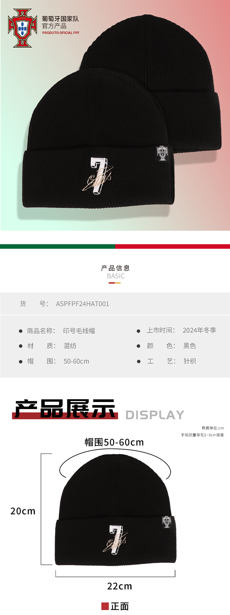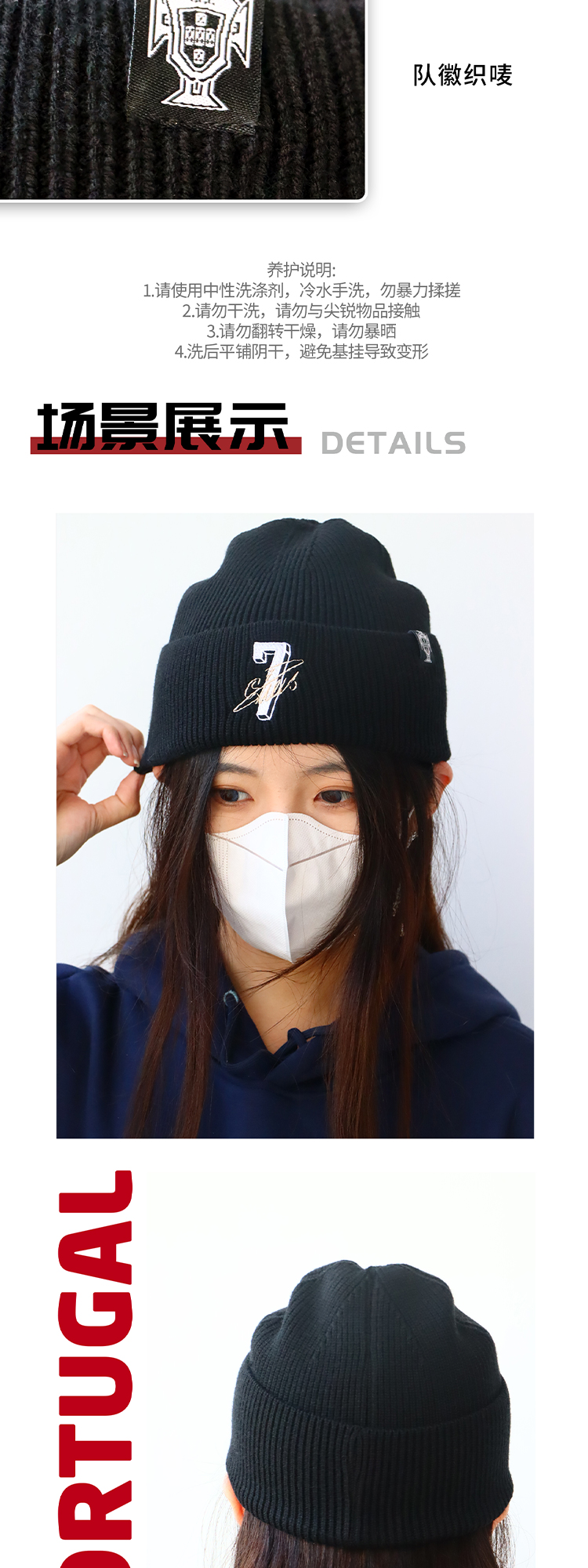 【官方正版】葡萄牙国家队 | 球员印号C罗刺绣秋冬保暖毛线帽
