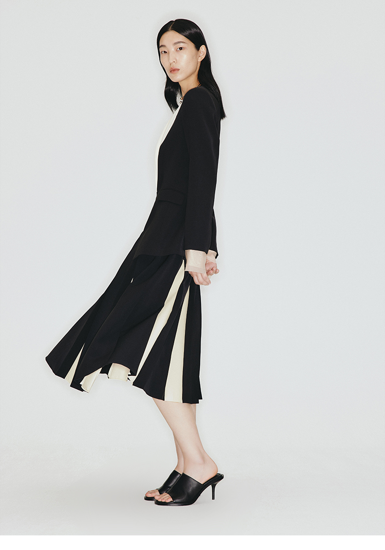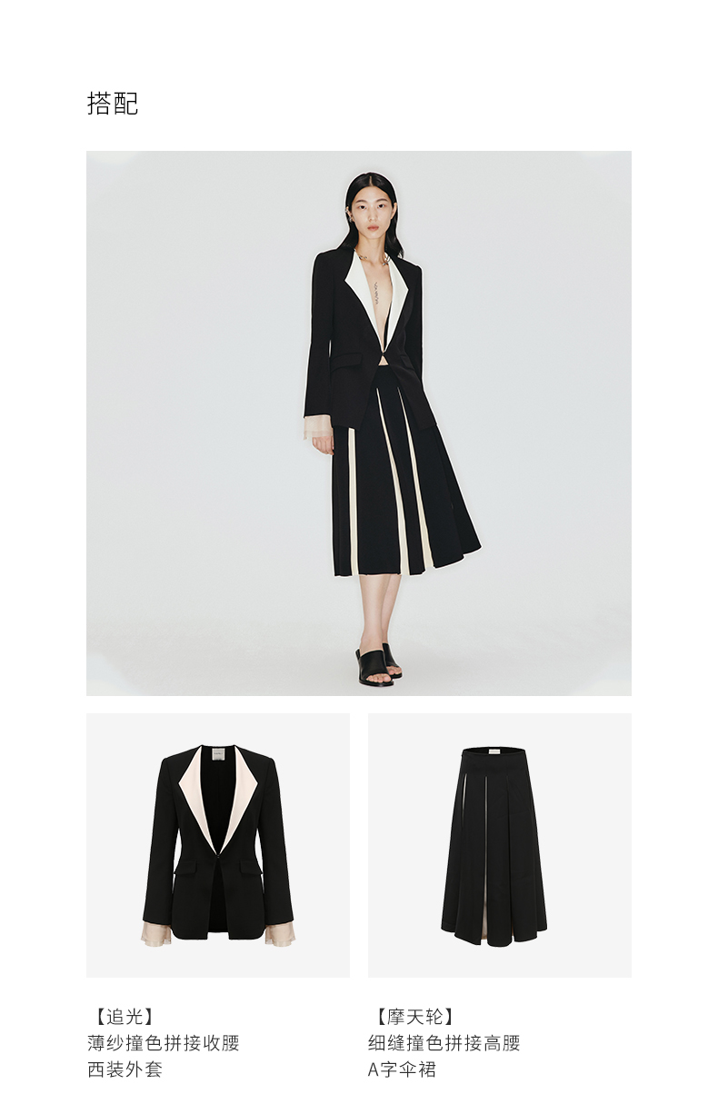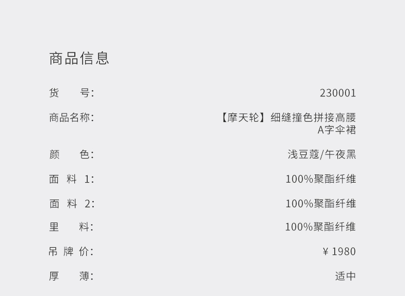 【摩天轮】细缝撞色拼接高腰A字伞裙/230001