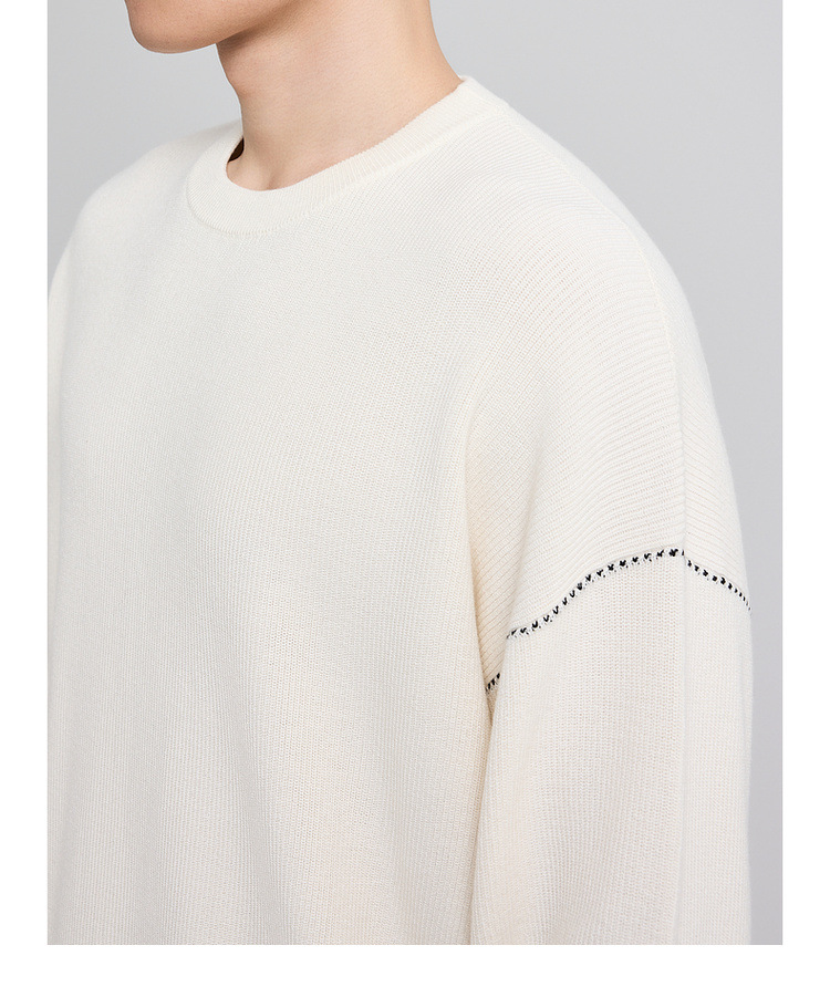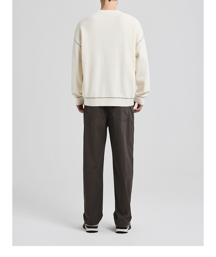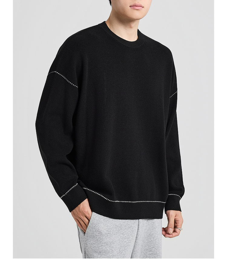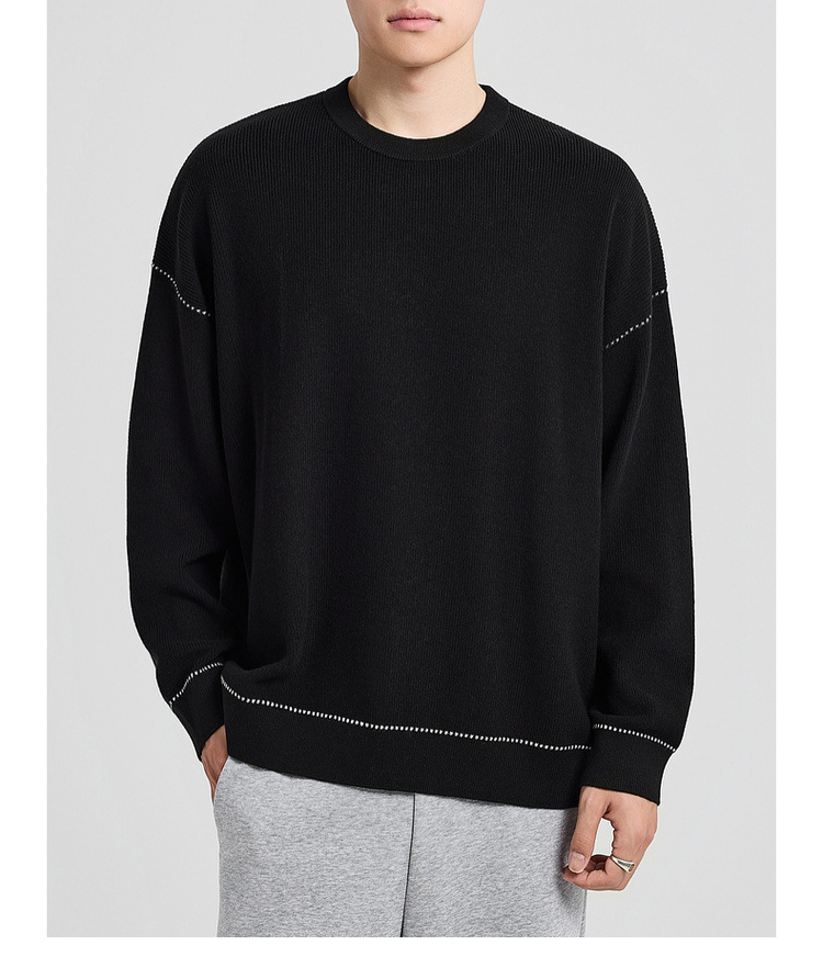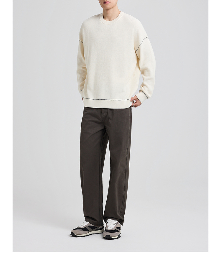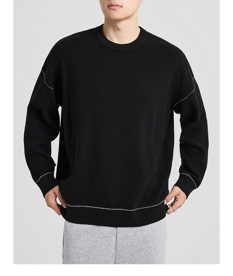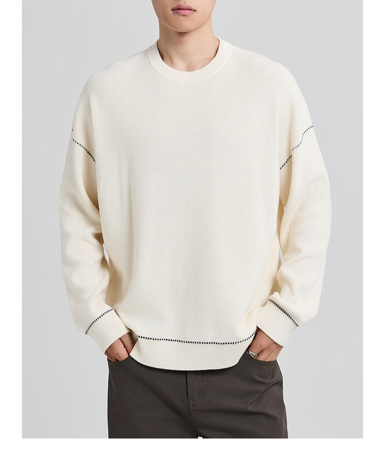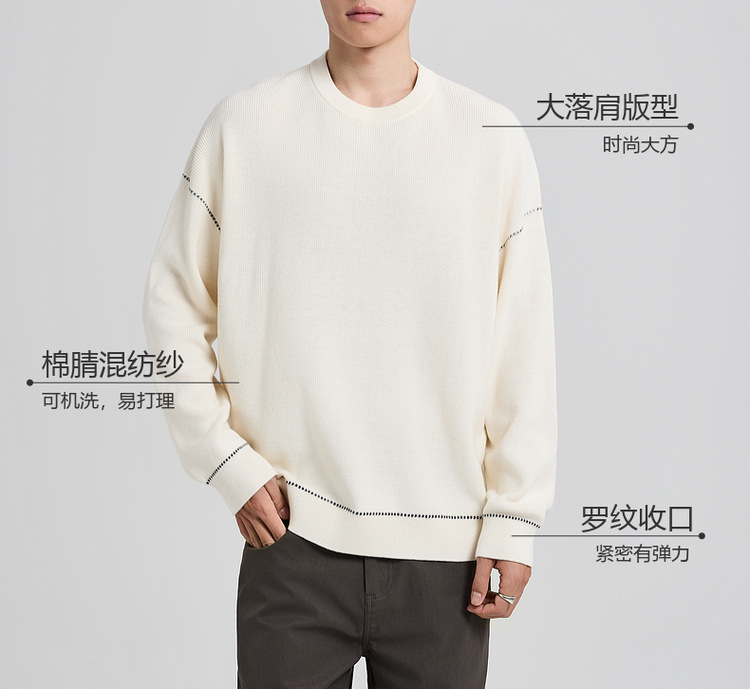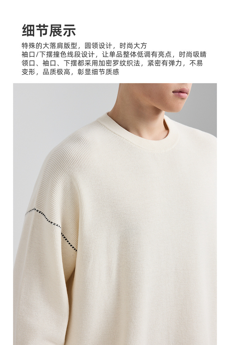 墨麦客男装撞色衔线套头毛衣男2025秋新款元宝针男士针织衫22006
