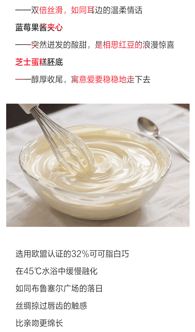 “慕斯如云,桃酱似蜜,一口下去,味蕾被宠坏。”
