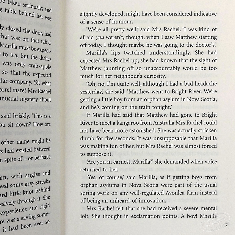 They are waiting for an orphan boy to help with the work at Green Gables - but a skinny, red-haired girl turns up instead. Feisty and full of spirit, Anne Shirley charms her way into the Cuthberts' affection with her vivid imagination and constant chatter. It's not long before Anne finds herself in trouble, but soon it becomes impossible for the Cuthberts to imagine life without 'their' Anne - and for the people of Avonlea to recall what it was like before this wildly creative little girl whirled into town.
