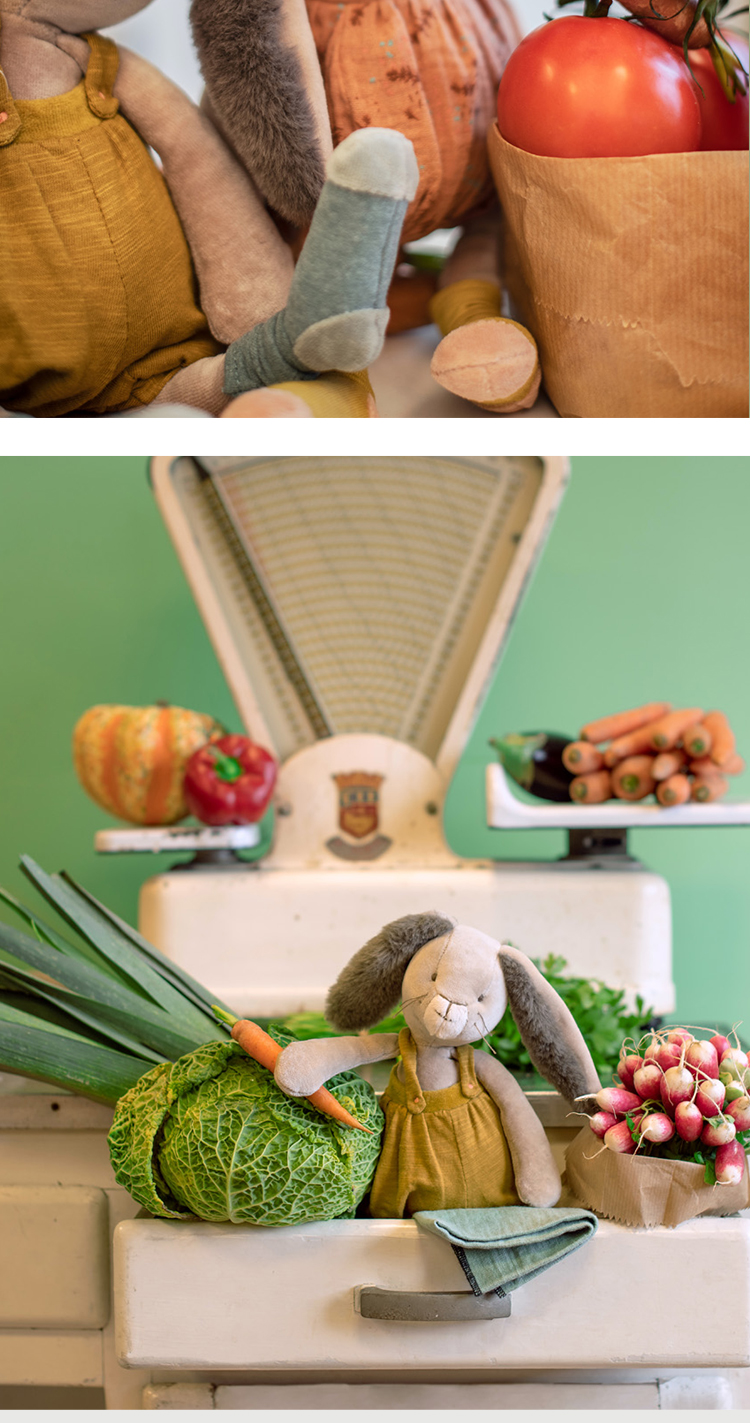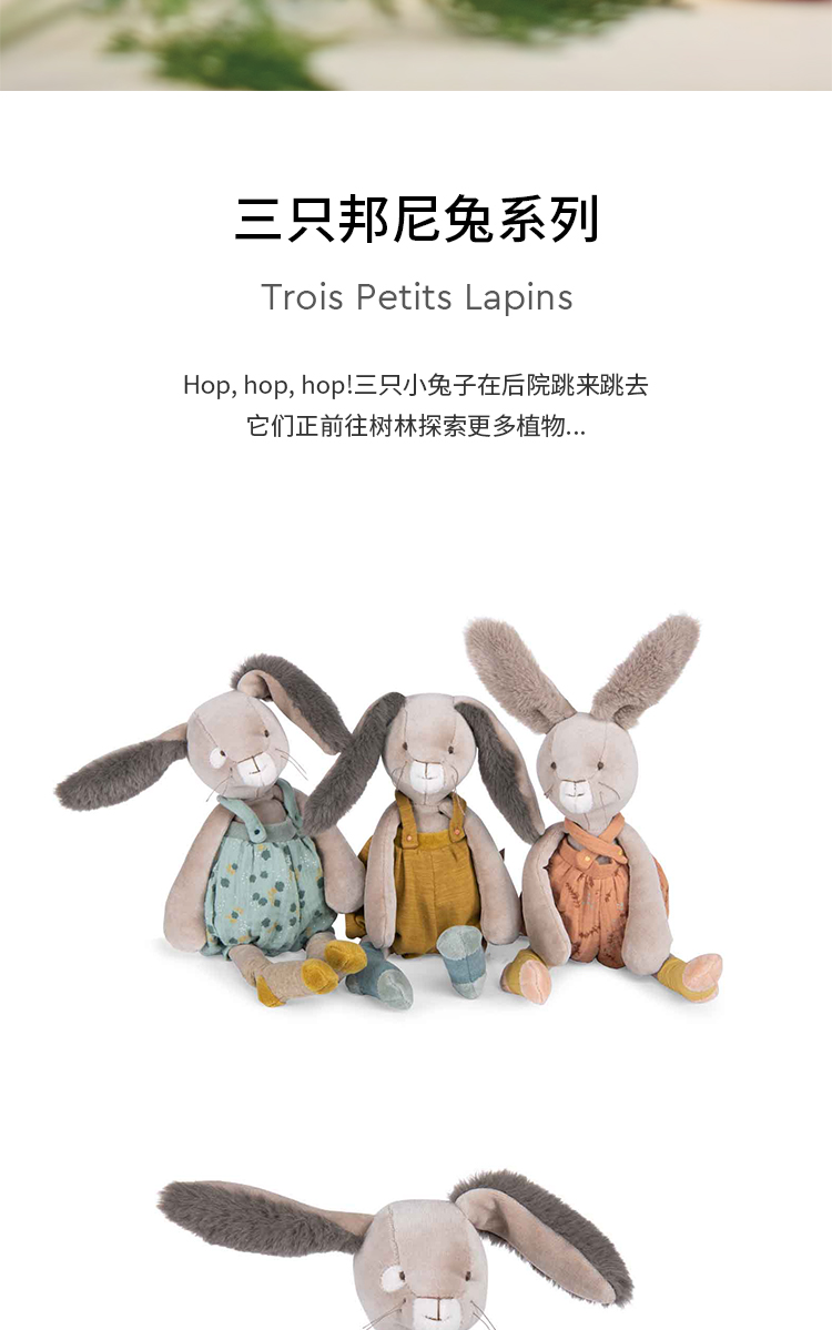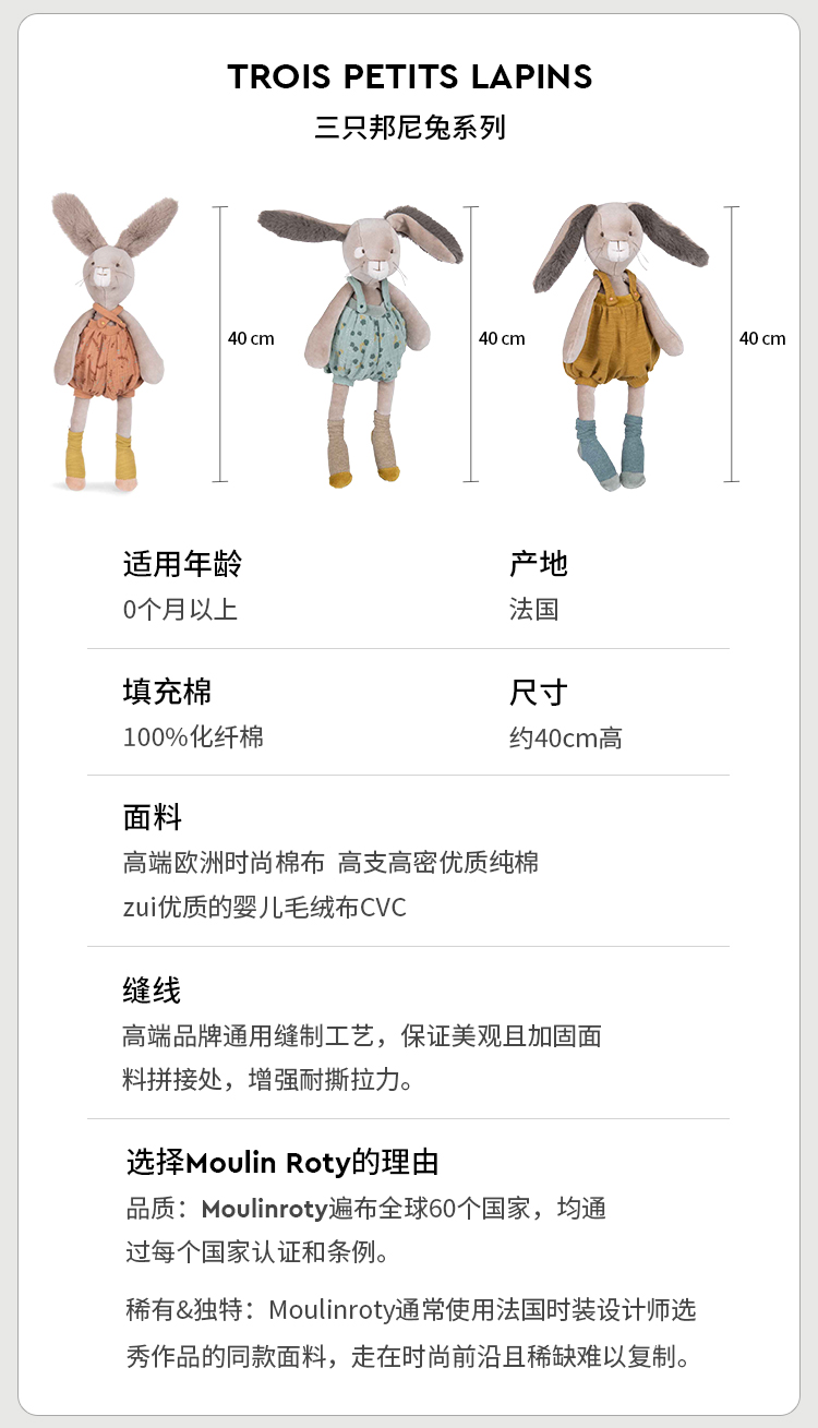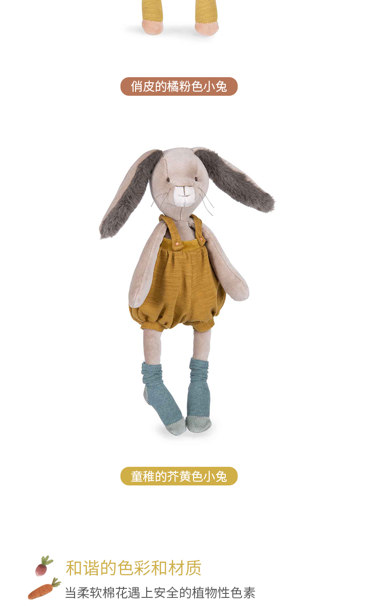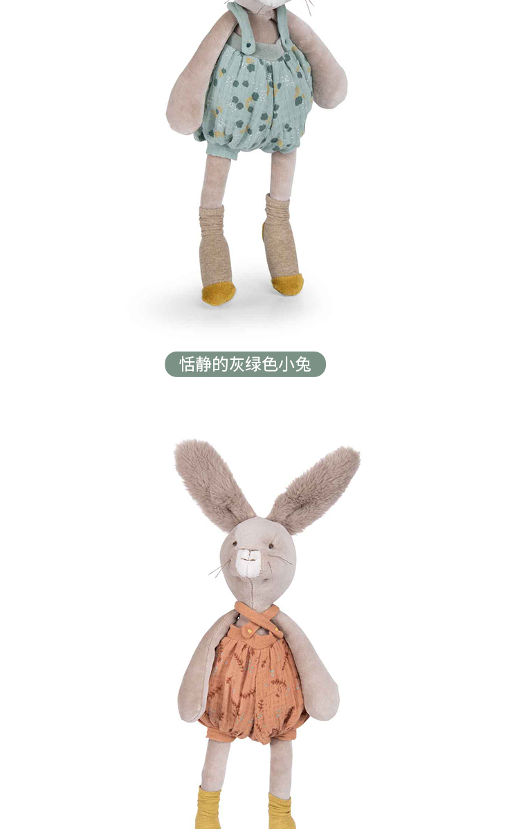 Moulin Roty 灰/橘色中兔玩偶 法式玩偶 适合年龄0岁+ 三只邦尼兔系列 678025