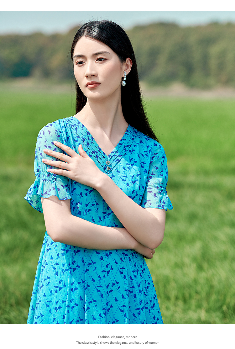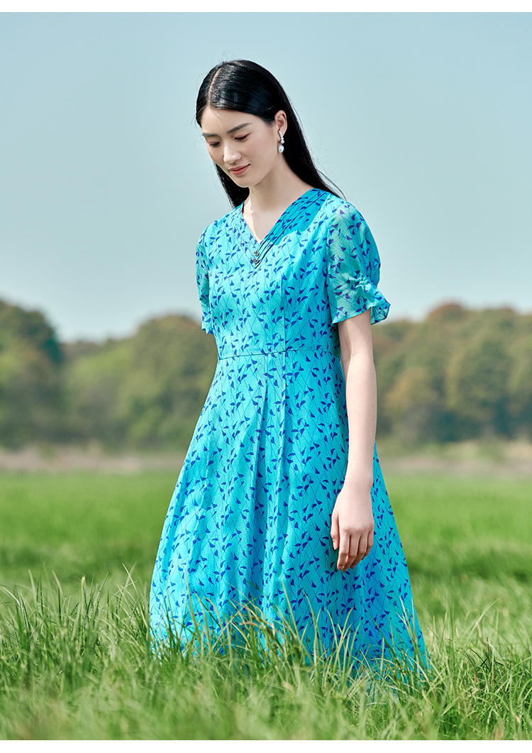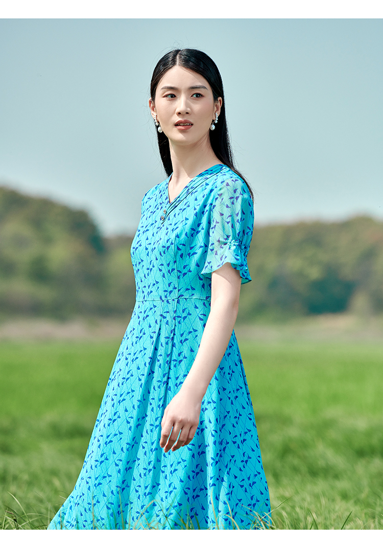 佐尔美2022夏季新款 桑蚕丝真丝小碎花甜美连衣裙女E22LS38