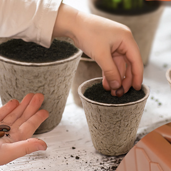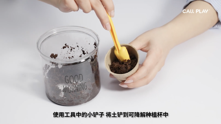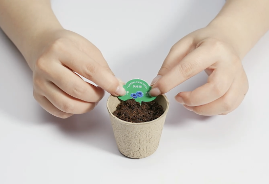 盆栽选用可降解杯,移栽不换盆,小花房种植出来,可以移植到家里的大花盆中,进行观察种植。