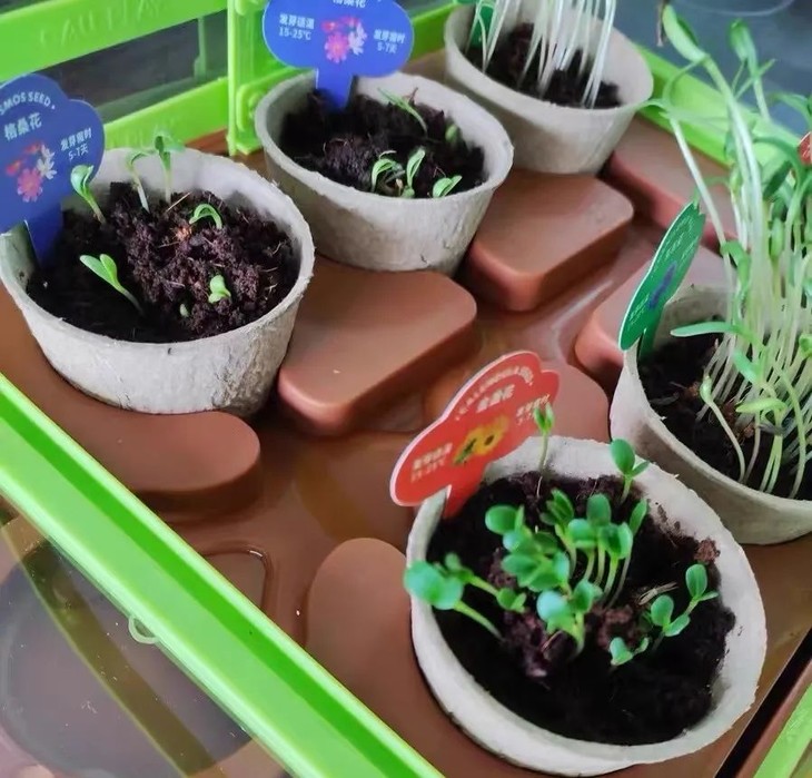 种花最担心的就是不发芽,这款专门为小朋友定制的,采用椰糠土,有种子定量器,让发芽更简单。我们种了5天左右基本就发芽了,后续等待开花~