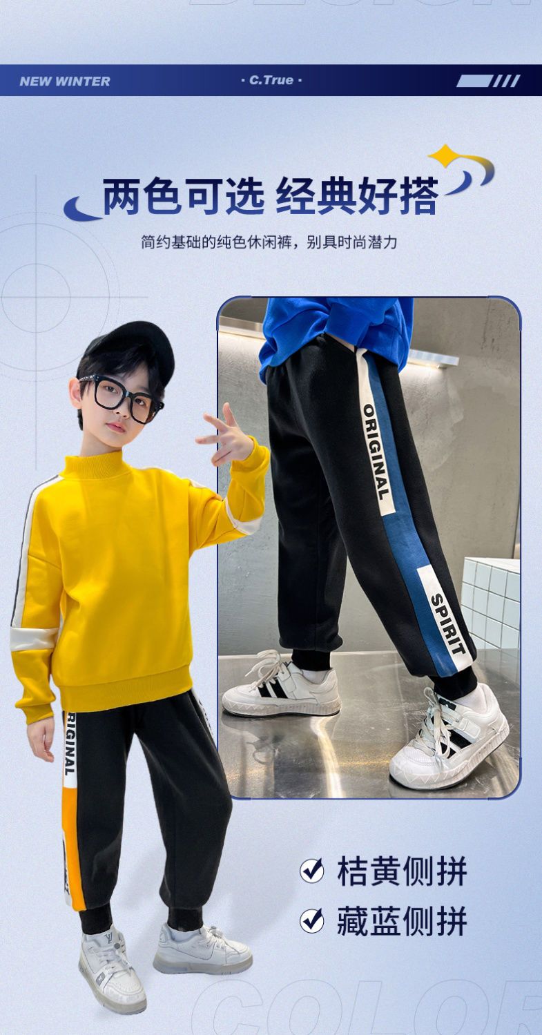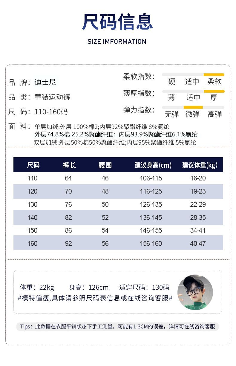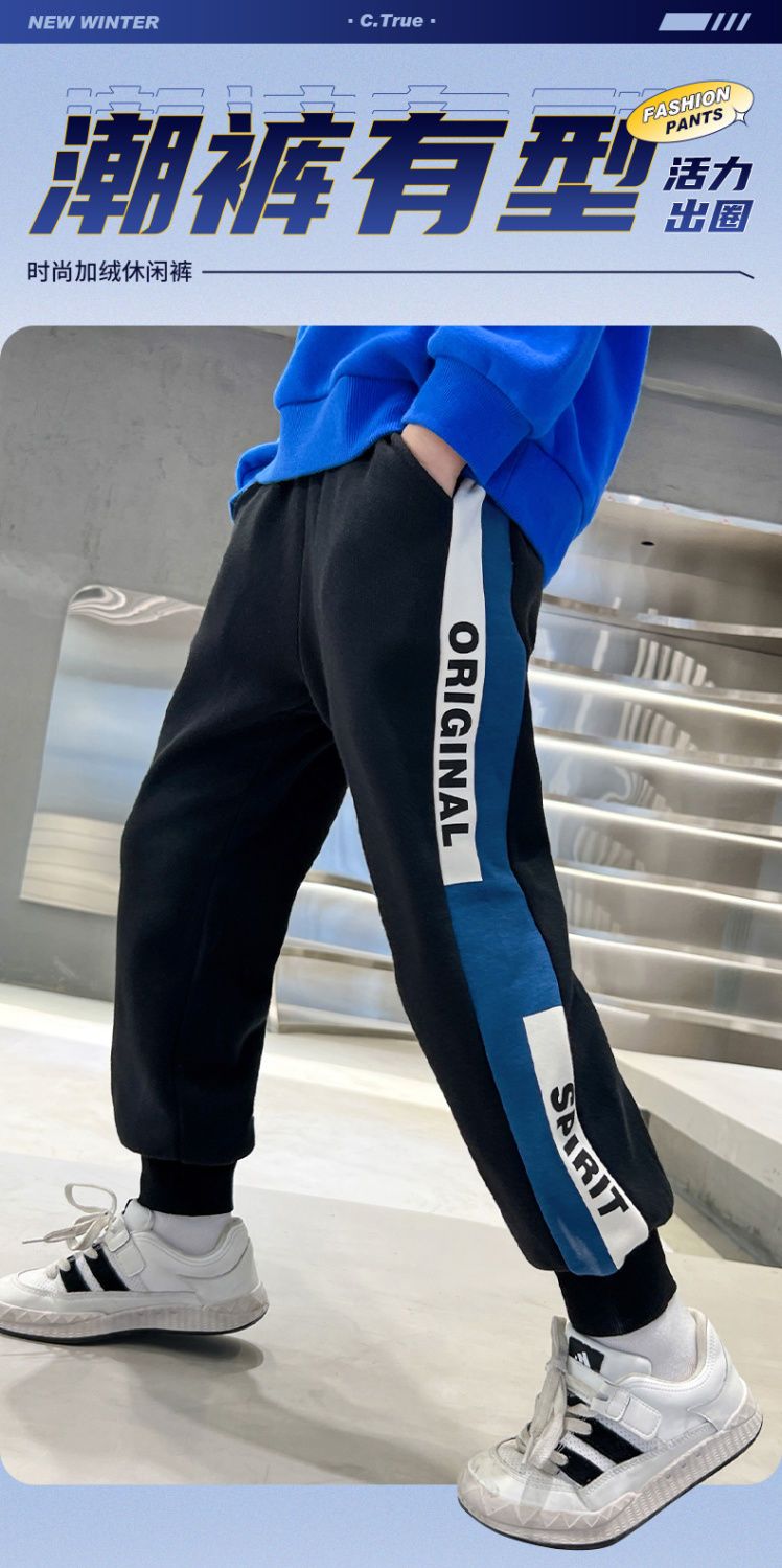 迪士尼男童裤子加绒加厚儿童棉裤一条过冬男大童保暖裤男孩运动裤