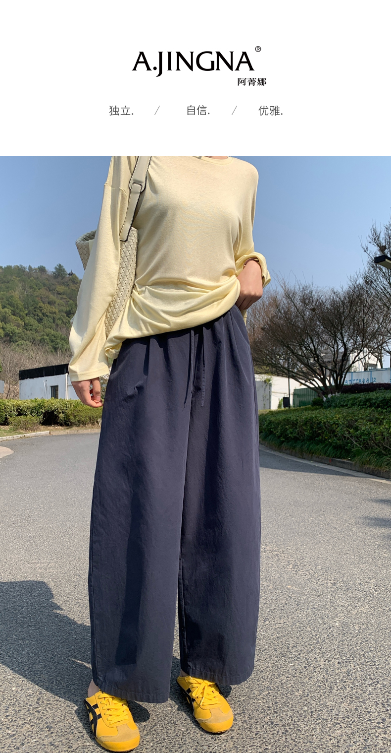 【空气直筒】阿菁娜春季新款空气直筒神裤长直筒双褶设计立体有型遮肉显腿直F31C210035