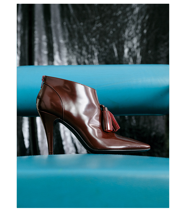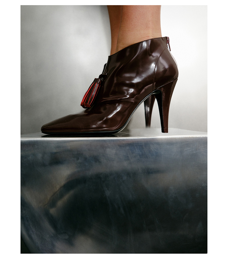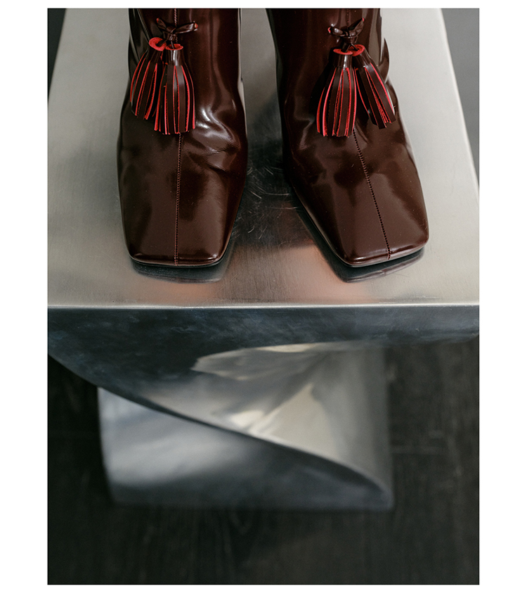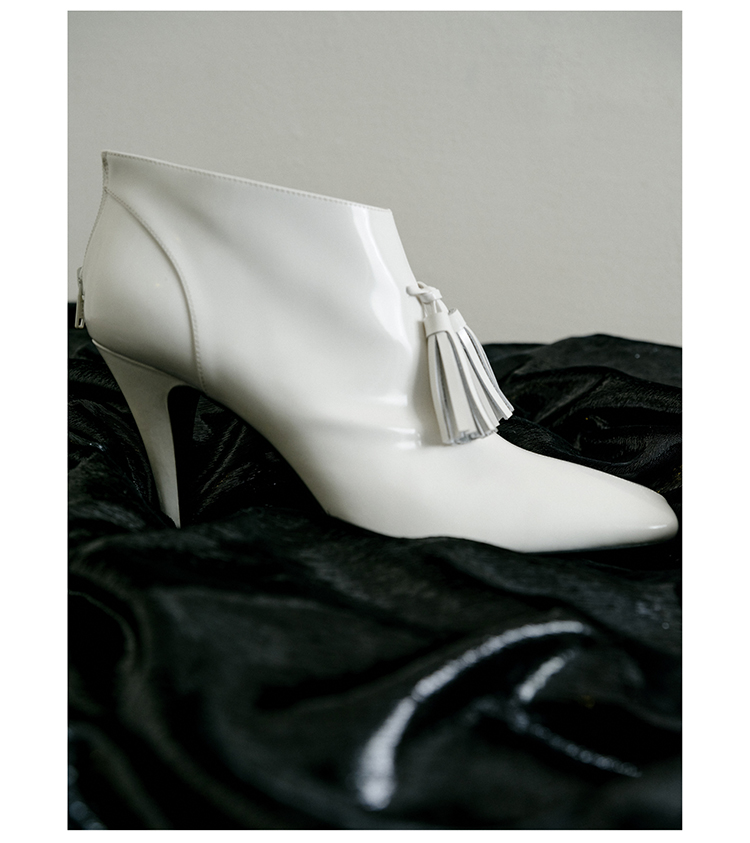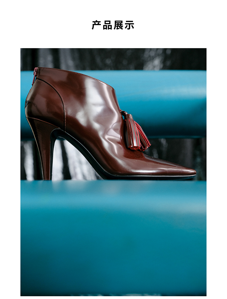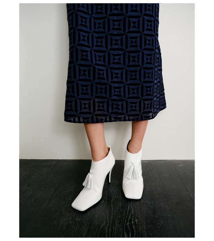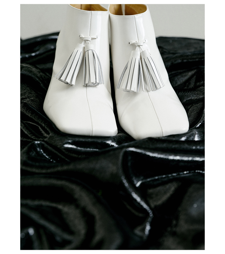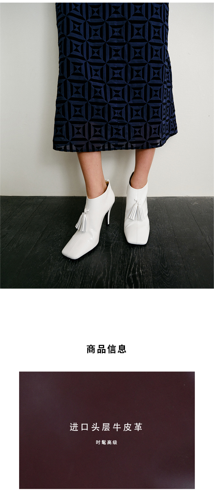 HIDEMI 节日系列进口头层牛皮流苏设计感方头极简设计感踝靴高跟鞋 白色/勃艮第红