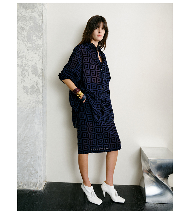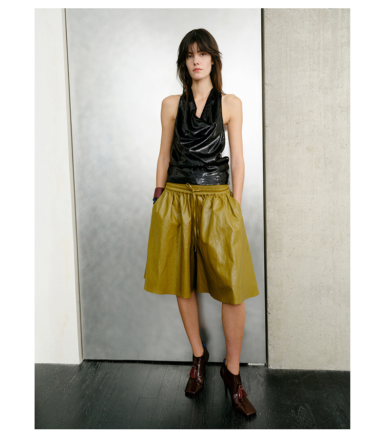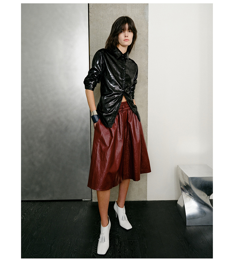 HIDEMI 微褶醋酸立体堆叠领不对称上衣