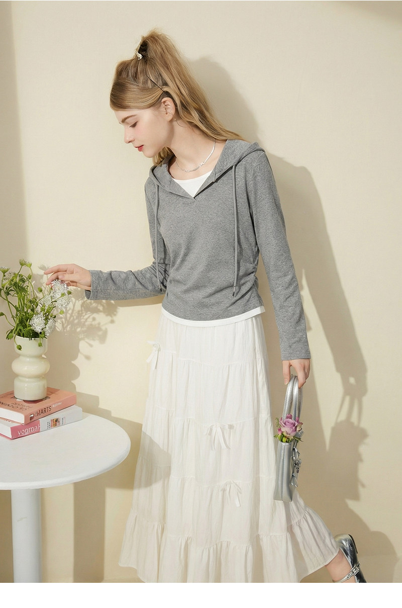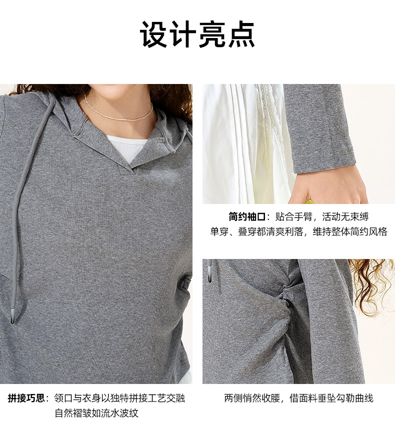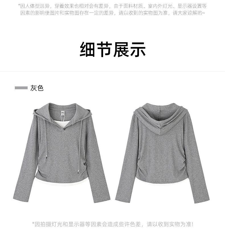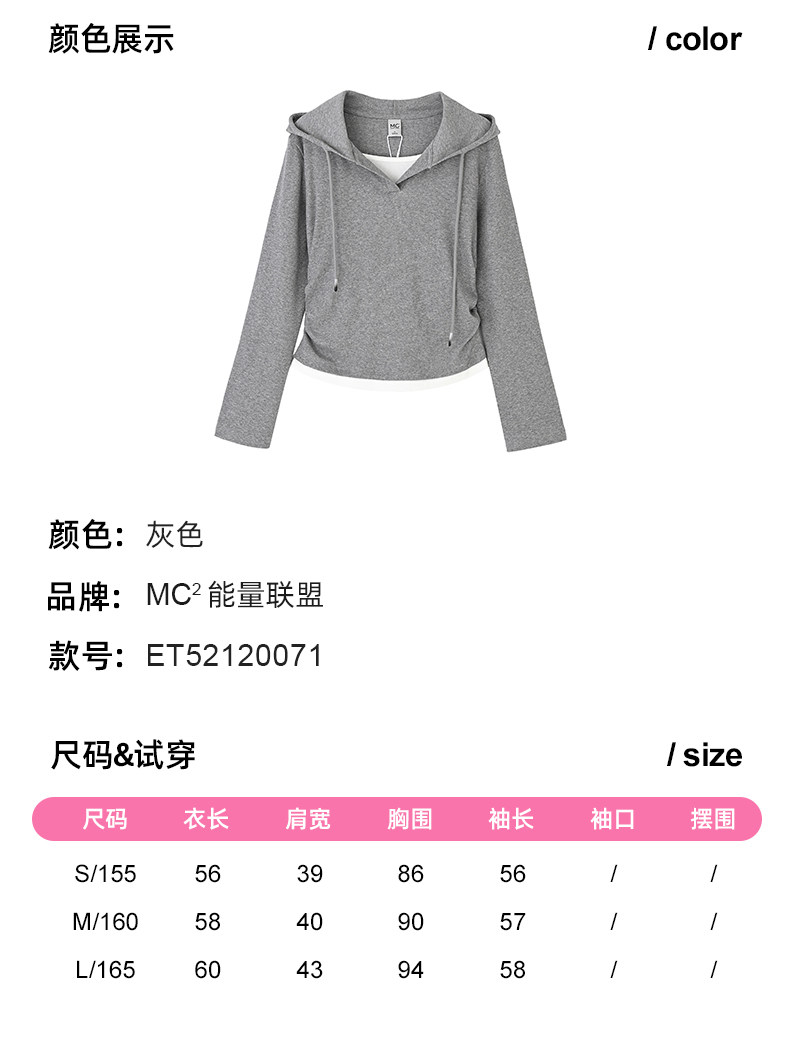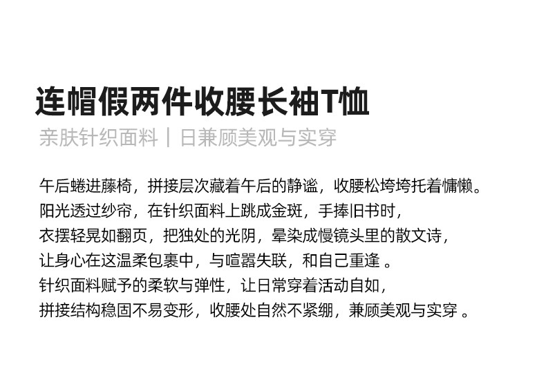 mc2连帽开v假两件收腰款T恤女装春秋季新款