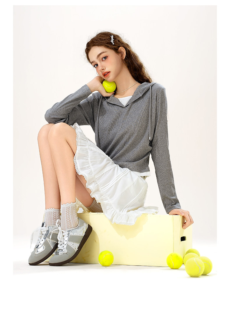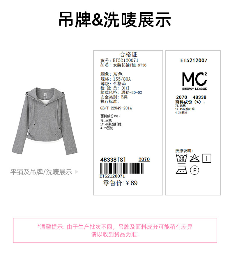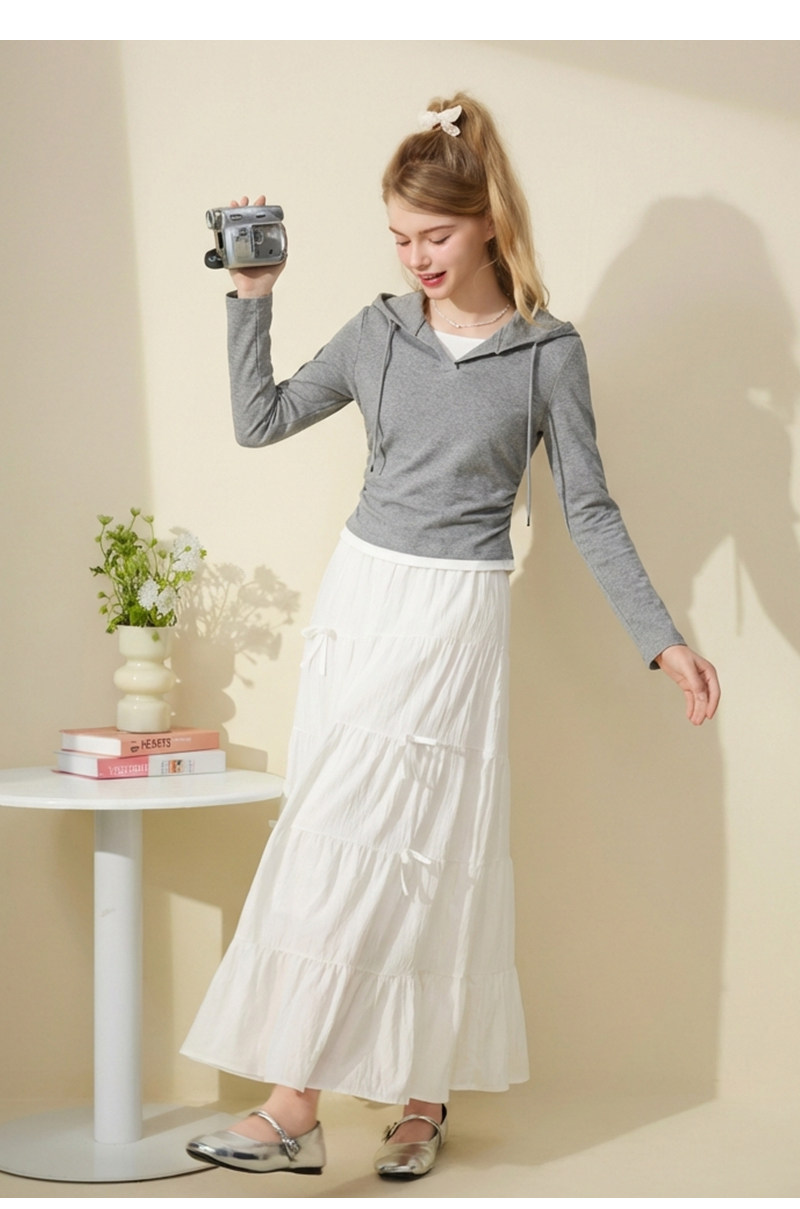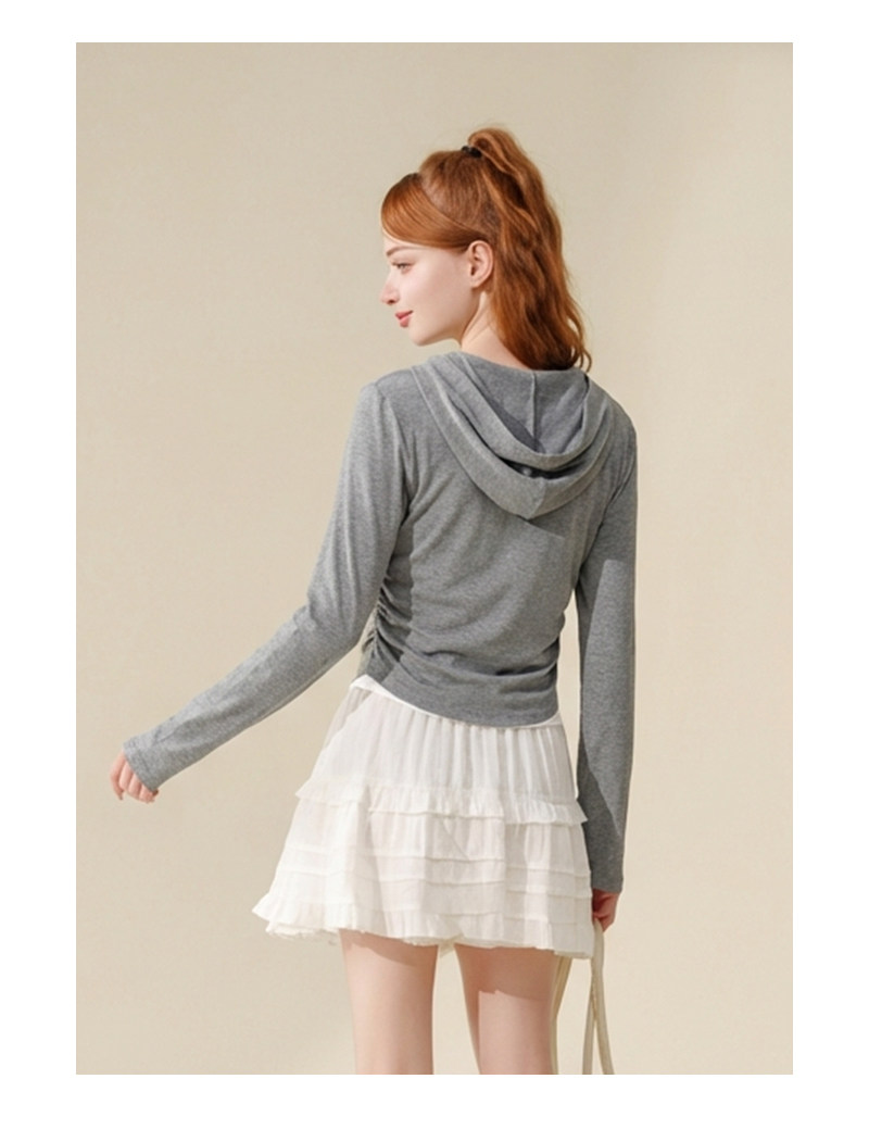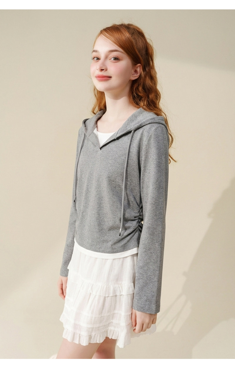 mc2连帽开v假两件收腰款T恤女装春秋季新款