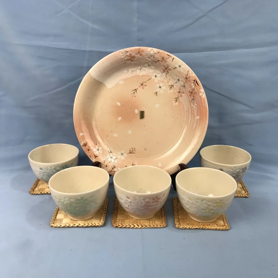 日本益园人窑樱花碗盘套组 6件装 原盒保留 实物见视频