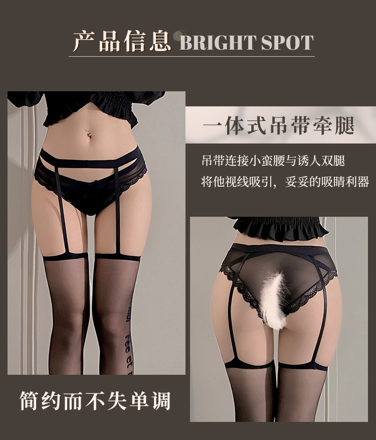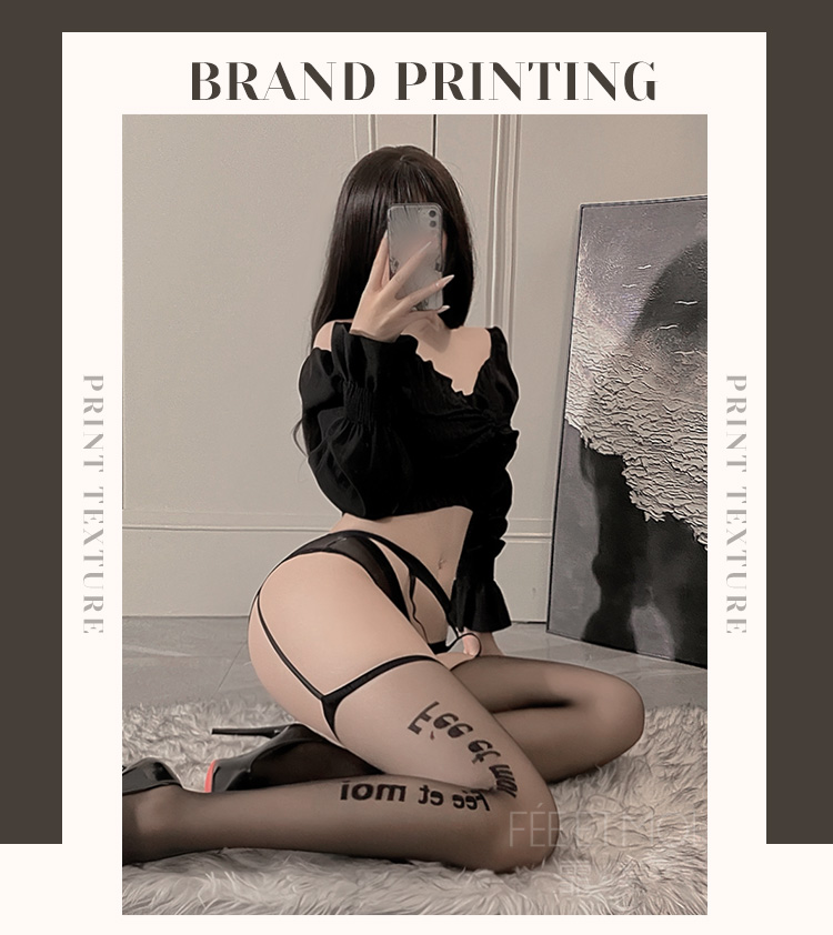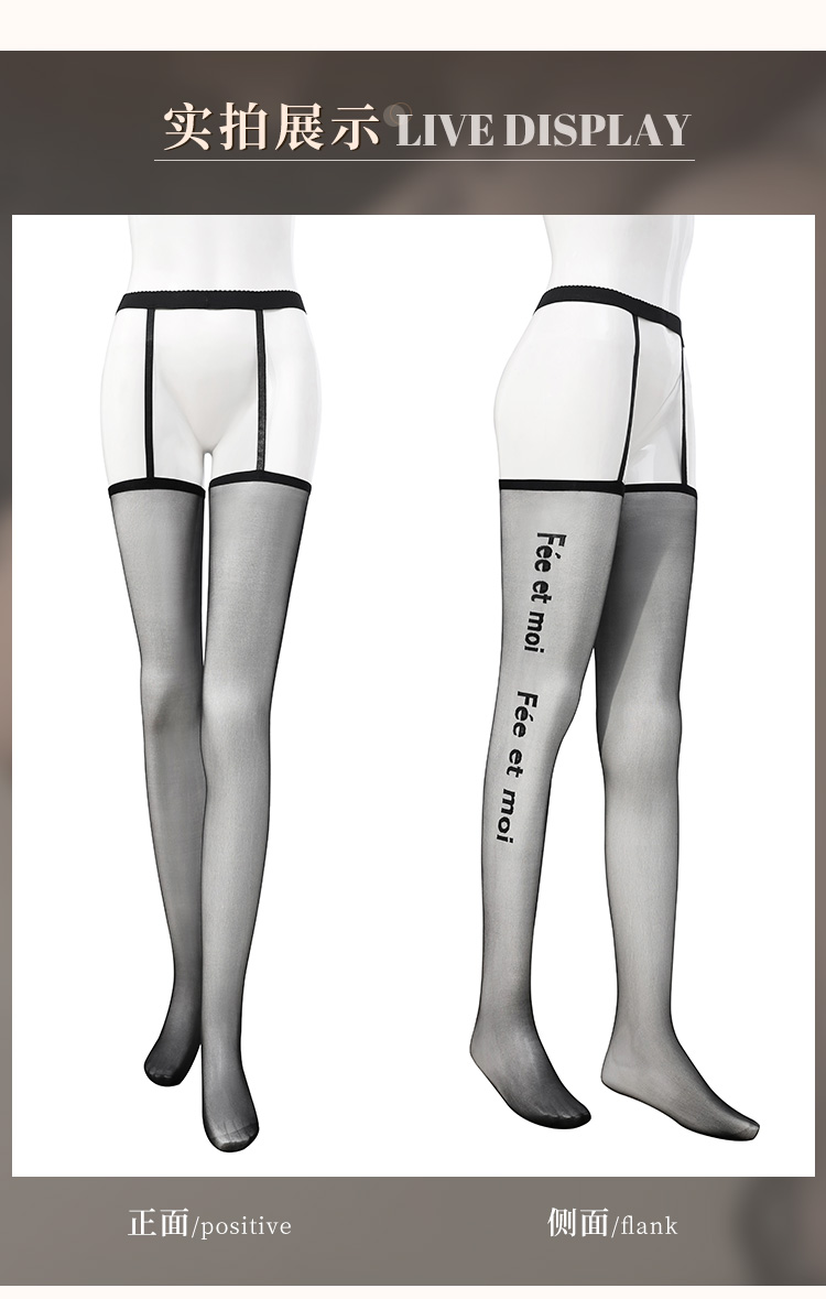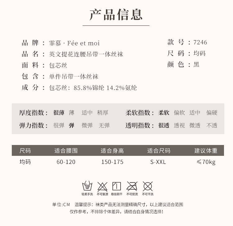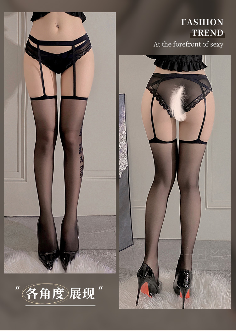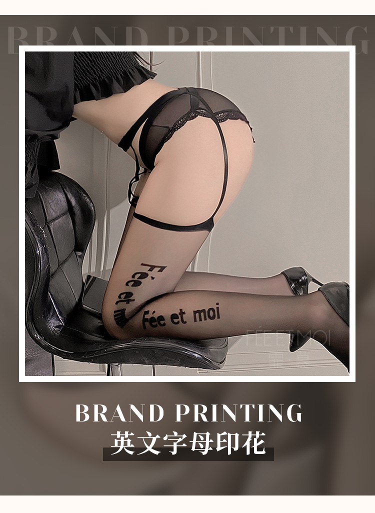 霏慕 英文提花连腰吊带一体丝袜7246 黑丝情感情趣内衣诱惑