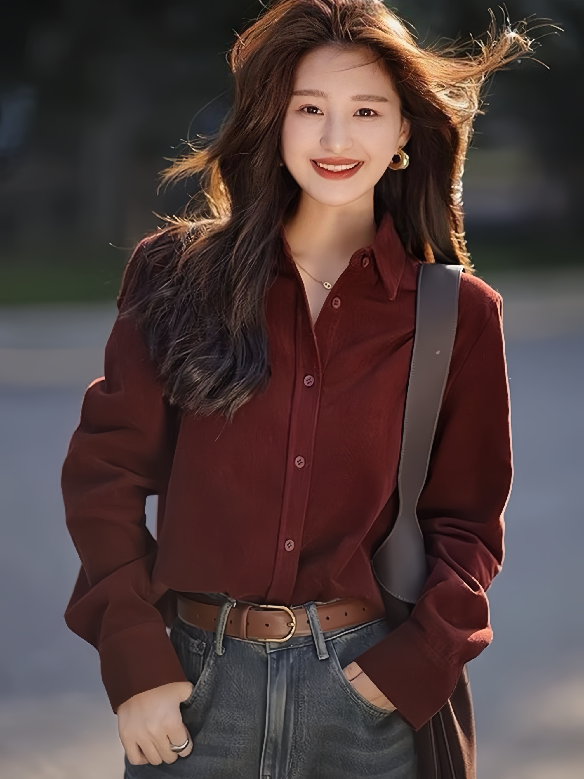 LONGNVFAIR安可拉红灯芯绒全棉衬衫 经典衬衫剪裁 自带复古氛围感 上身气质拉满