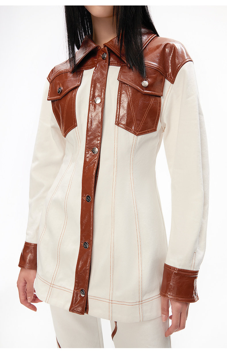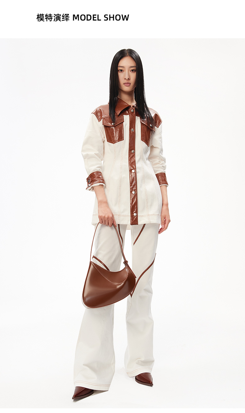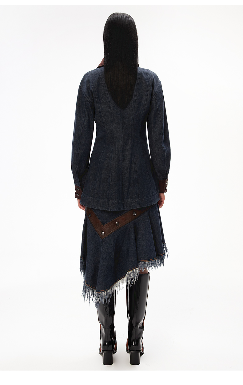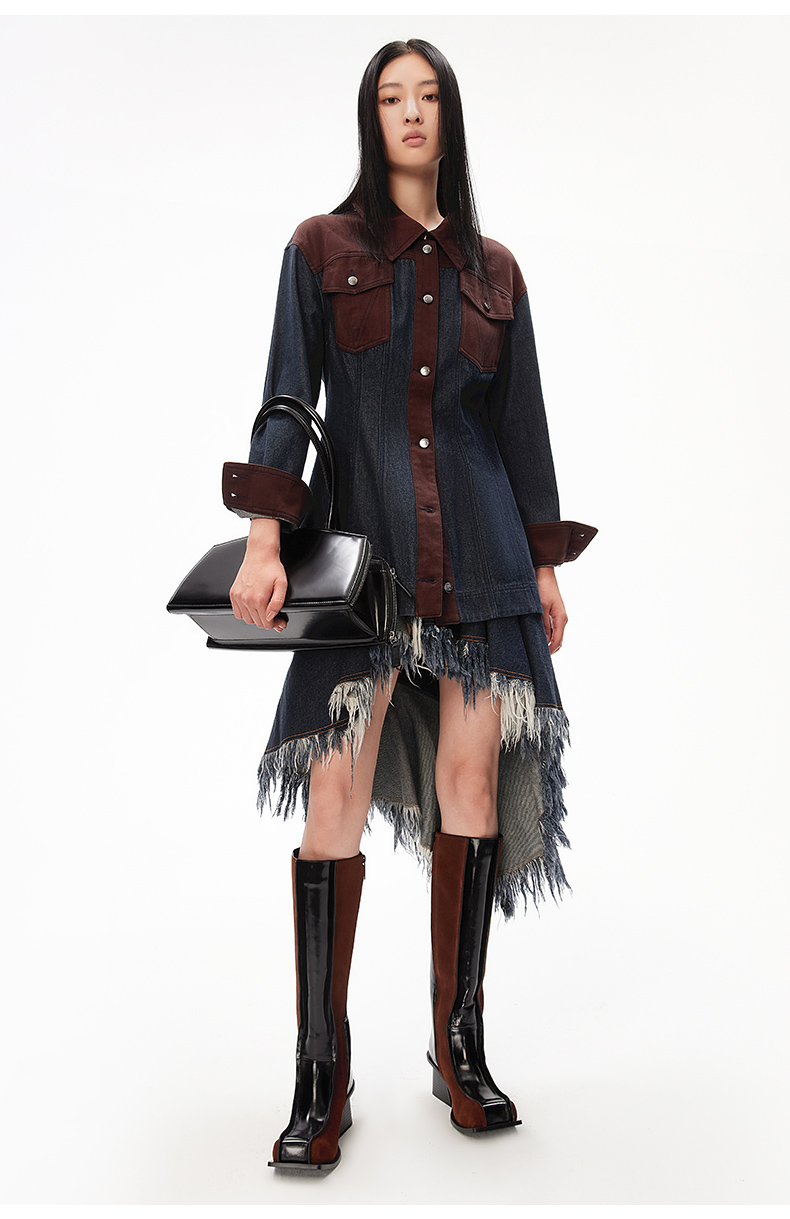 lost in echo设计师品牌复古小众西部风时髦撞色拼接收腰牛仔外套