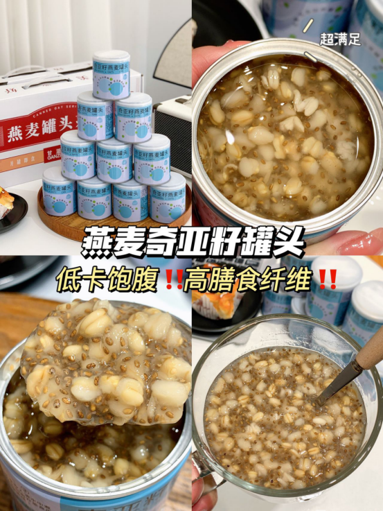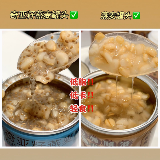 【燕麦奇亚籽罐头】 精心搭配制作 营养全面 口感香甜饱满 味道醇厚 Q弹顺滑 清甜爽口 绝对是代餐减肥良品呦 其中富含丰富的氨基酸等 微量元素对提高人体免疫力 美容养颜阿奴有不错的效果