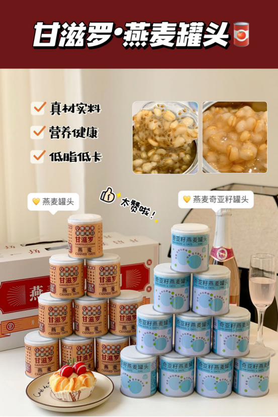 每罐里面的料都巨巨巨巨多! 多到要溢出来!!!!!!! 真的是满满一罐不像有些罐头 里的料占比很少汤汤水水的很多! 里面的燕麦颗颗饱满吃起来糯叭叭的 都是微微的甜 配料表也是非常非常的干净! 健康又美味必须要囤起来!