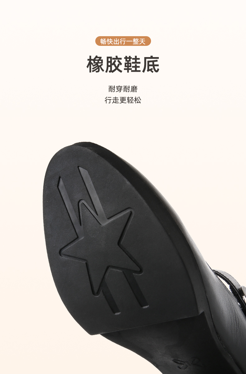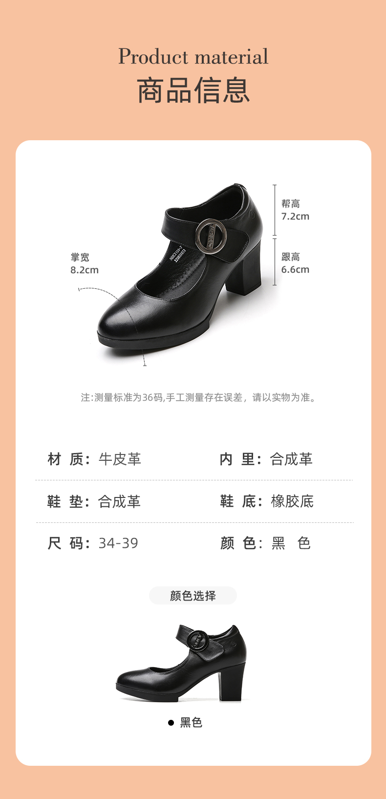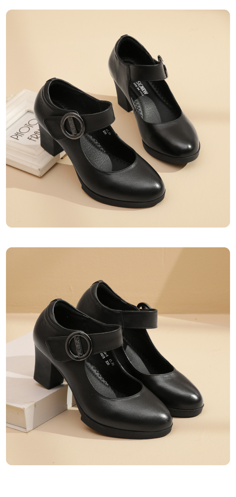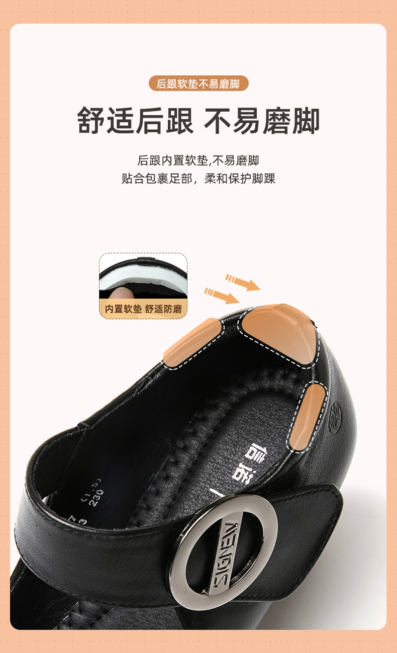 真皮走秀高跟鞋头层牛皮女鞋单鞋软底旗袍粗跟春秋季通勤妈妈皮鞋5C3153-7