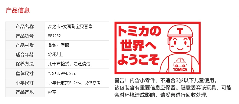 Tomica 多美卡梦之仿真车-大耳狗宝贝喜拿TMSC887232