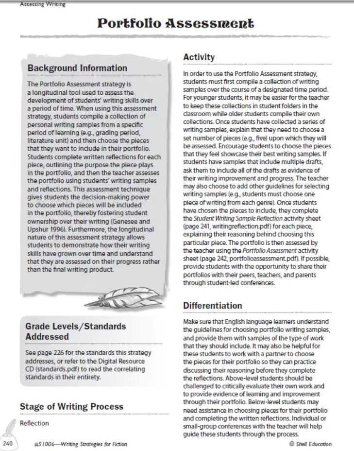 本节描述了几个整体的写作评估选项。书中列出的每一种策略都包括该策略的目的和好处,以及它与写作的联系、适合的等级水平、它所满足的McREL和共同核心标准。不仅根据不同年级的孩子给出不同策略,同年级的孩子水平不一的学生使用的策略也不尽相同,以适应所有类型的学生。