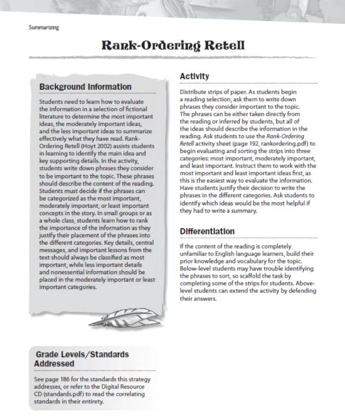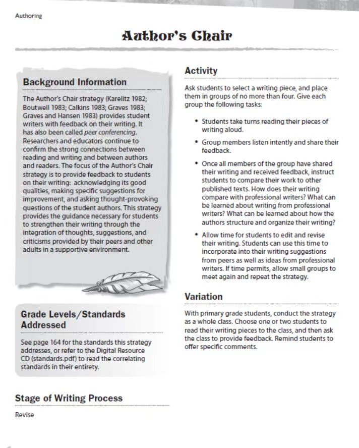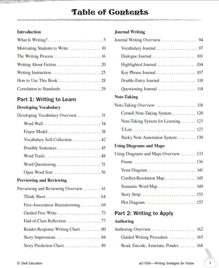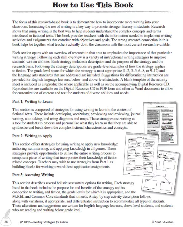 这一版块提供了运用写作来应用新知识的策略: 创作、总结和应用所有流派的知识。这些策略提供了利用整个写作过程的机会,来撰写一篇包含他们对相关概念知识的文章。