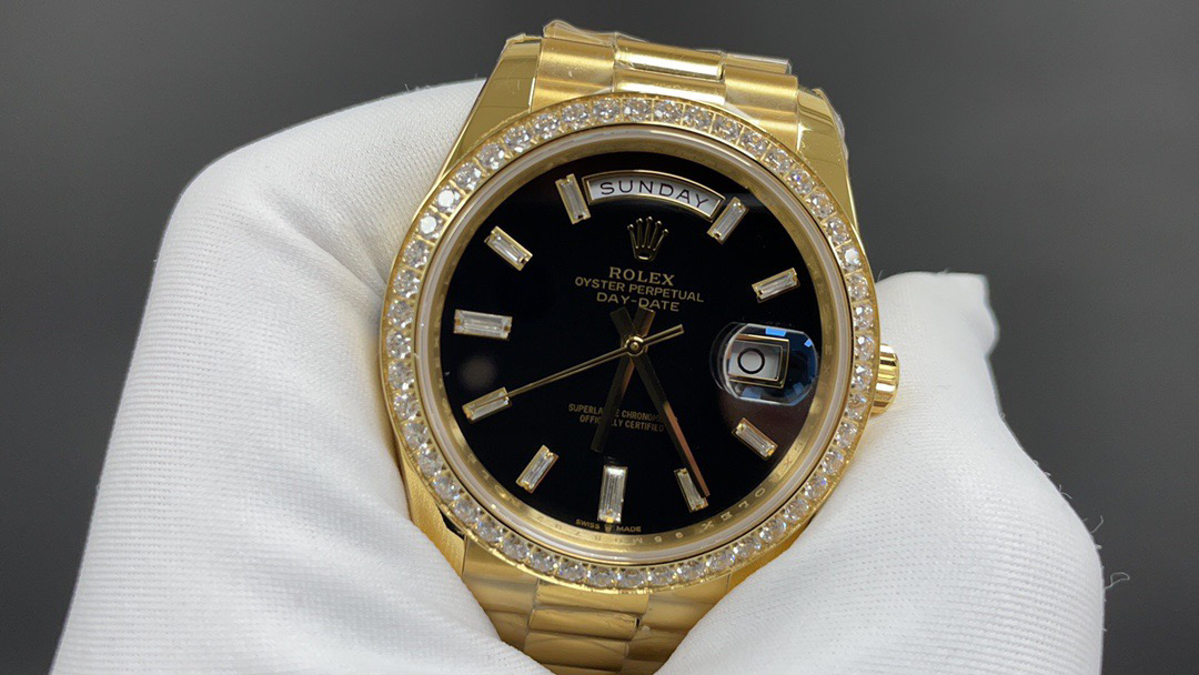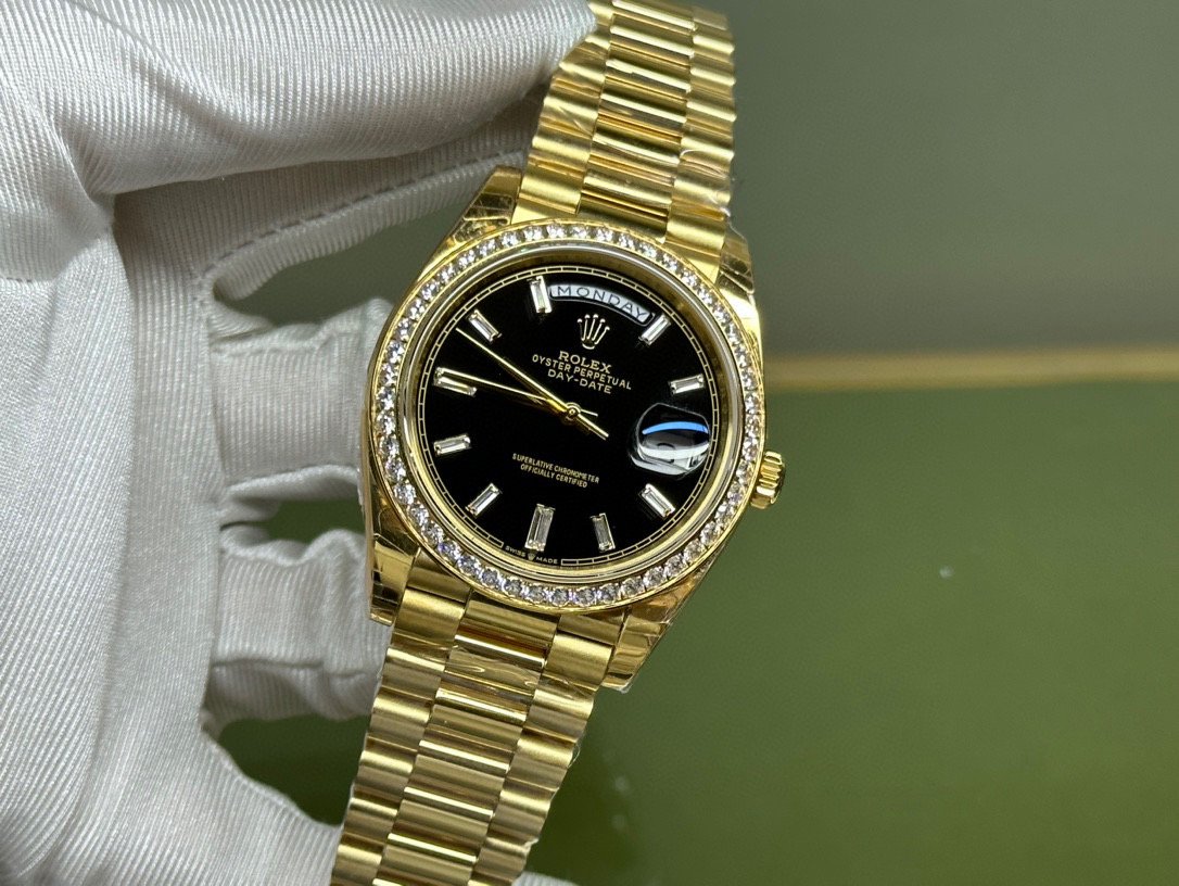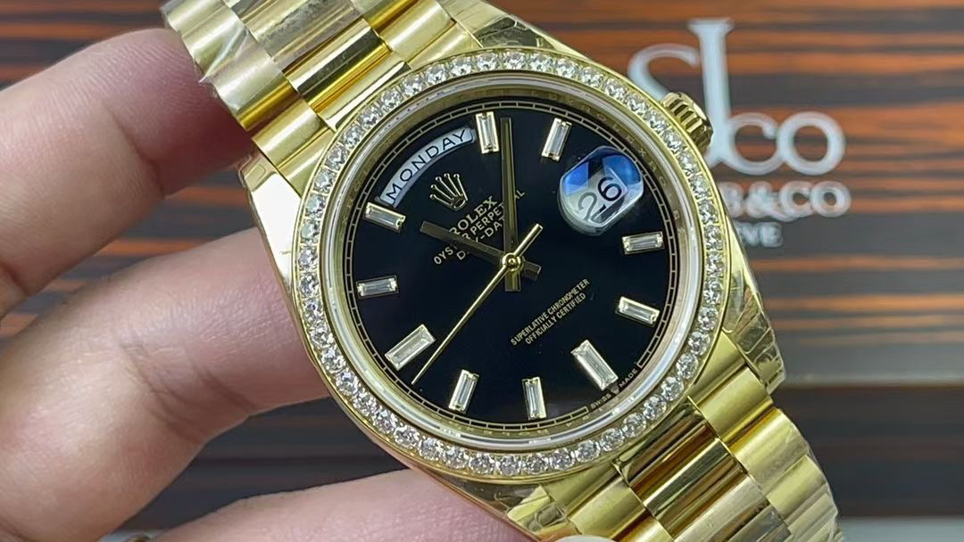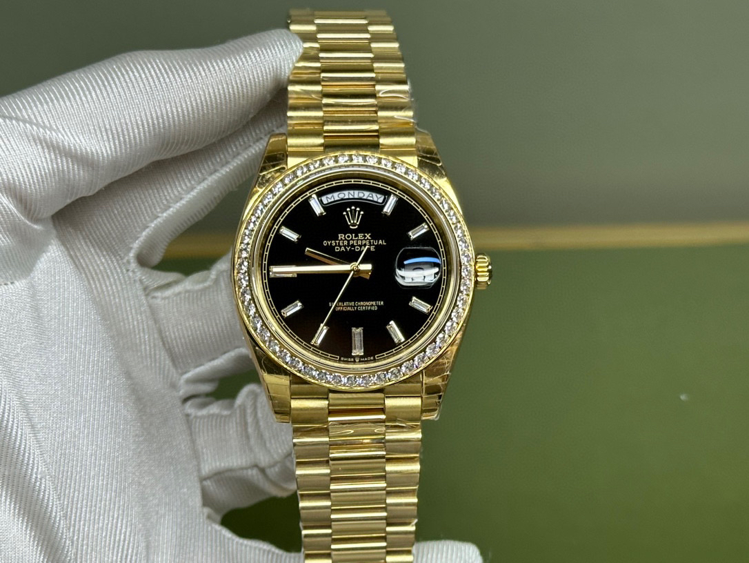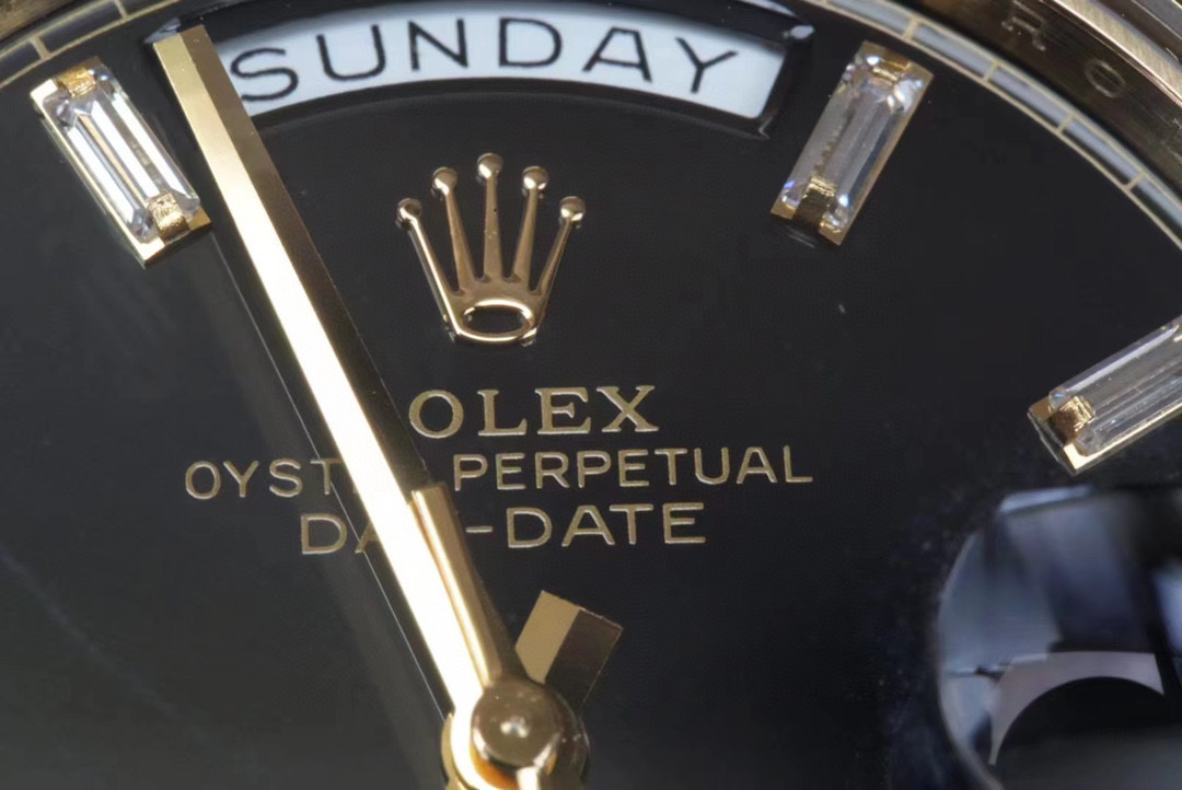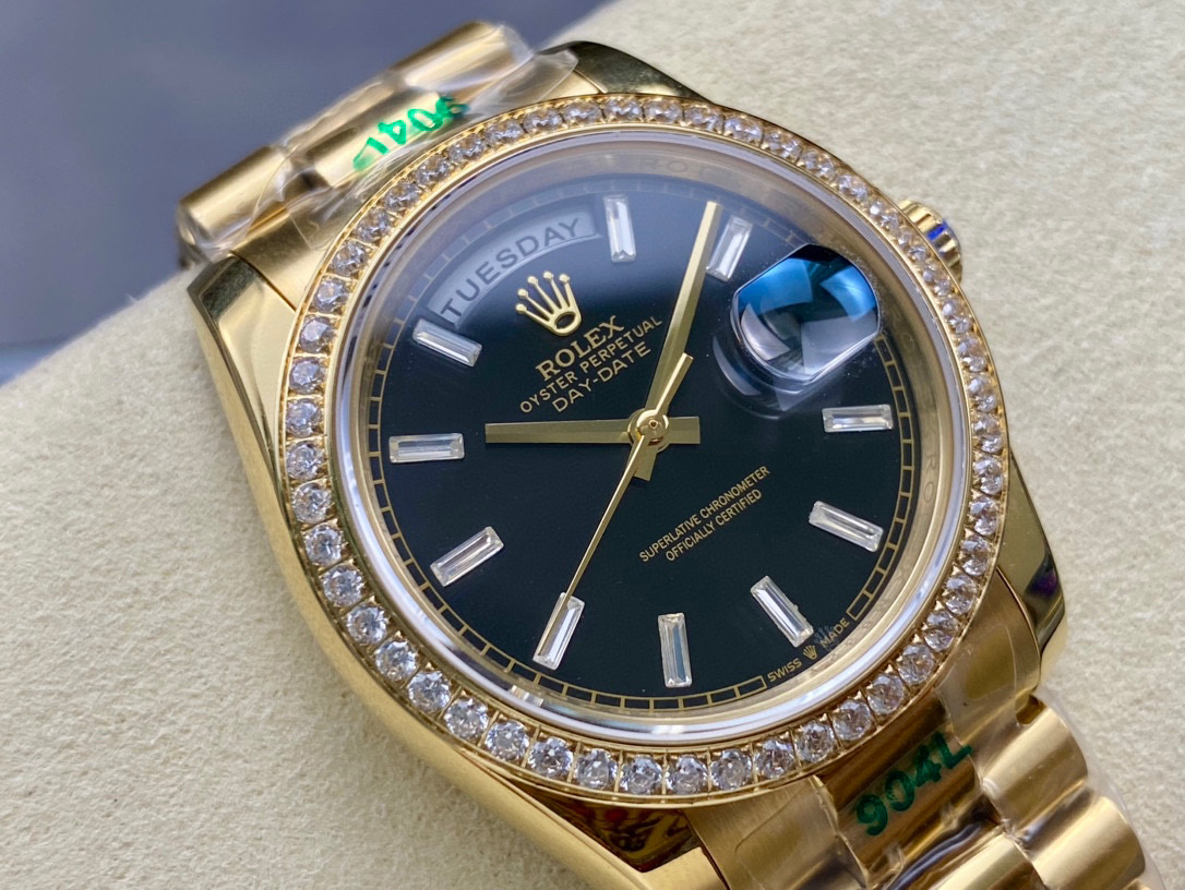 (黑冰糖圈口手工镶嵌钻石)NOOB Factory新力作V2升级版 劳力士Rolex星期日志型40mm 搭载原版3255自动机械机芯228239系列腕表,40毫米直径,研发耗时16个月!原版1比1开模
