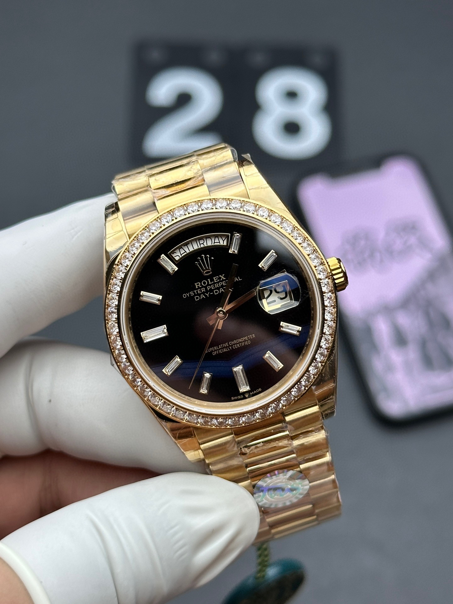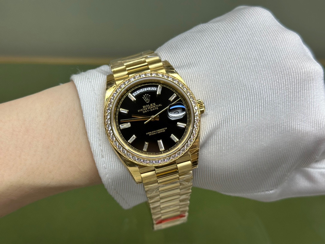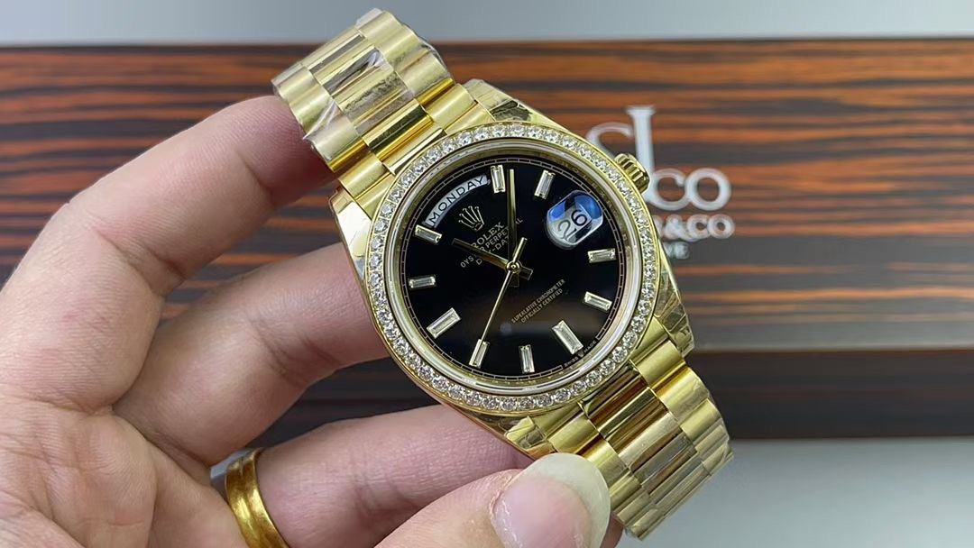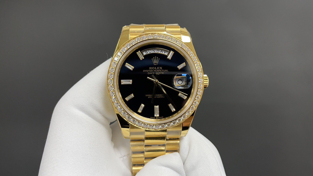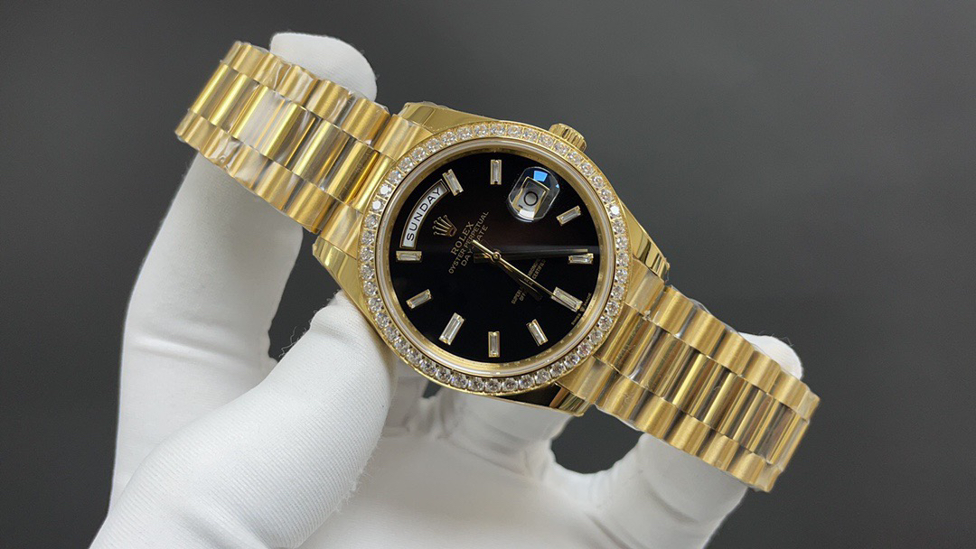 (黑冰糖圈口手工镶嵌钻石)NOOB Factory新力作V2升级版 劳力士Rolex星期日志型40mm 搭载原版3255自动机械机芯228239系列腕表,40毫米直径,研发耗时16个月!原版1比1开模