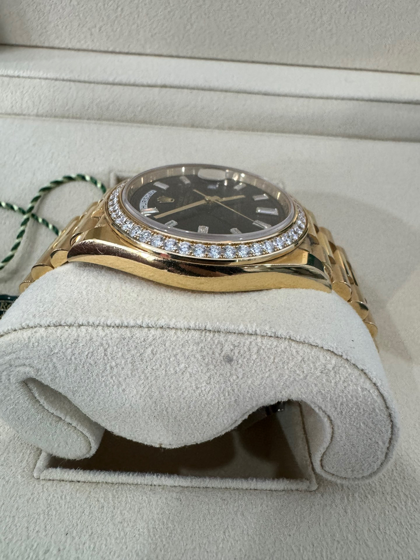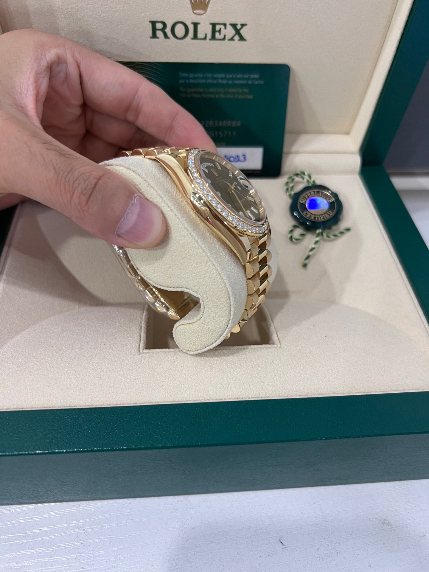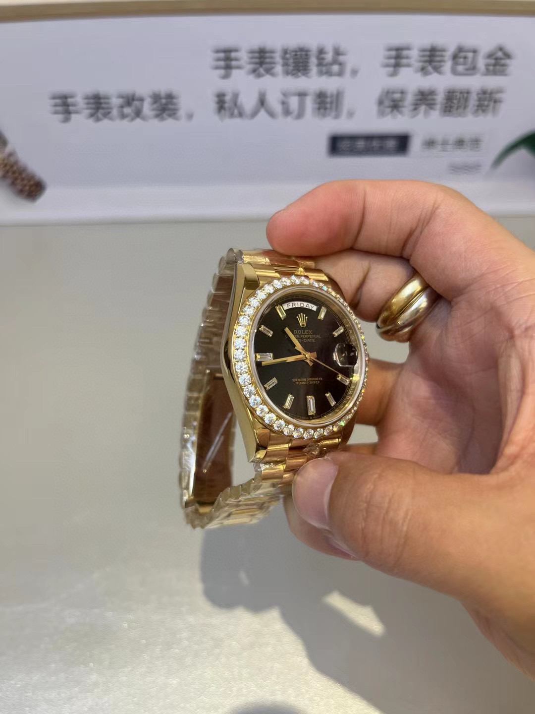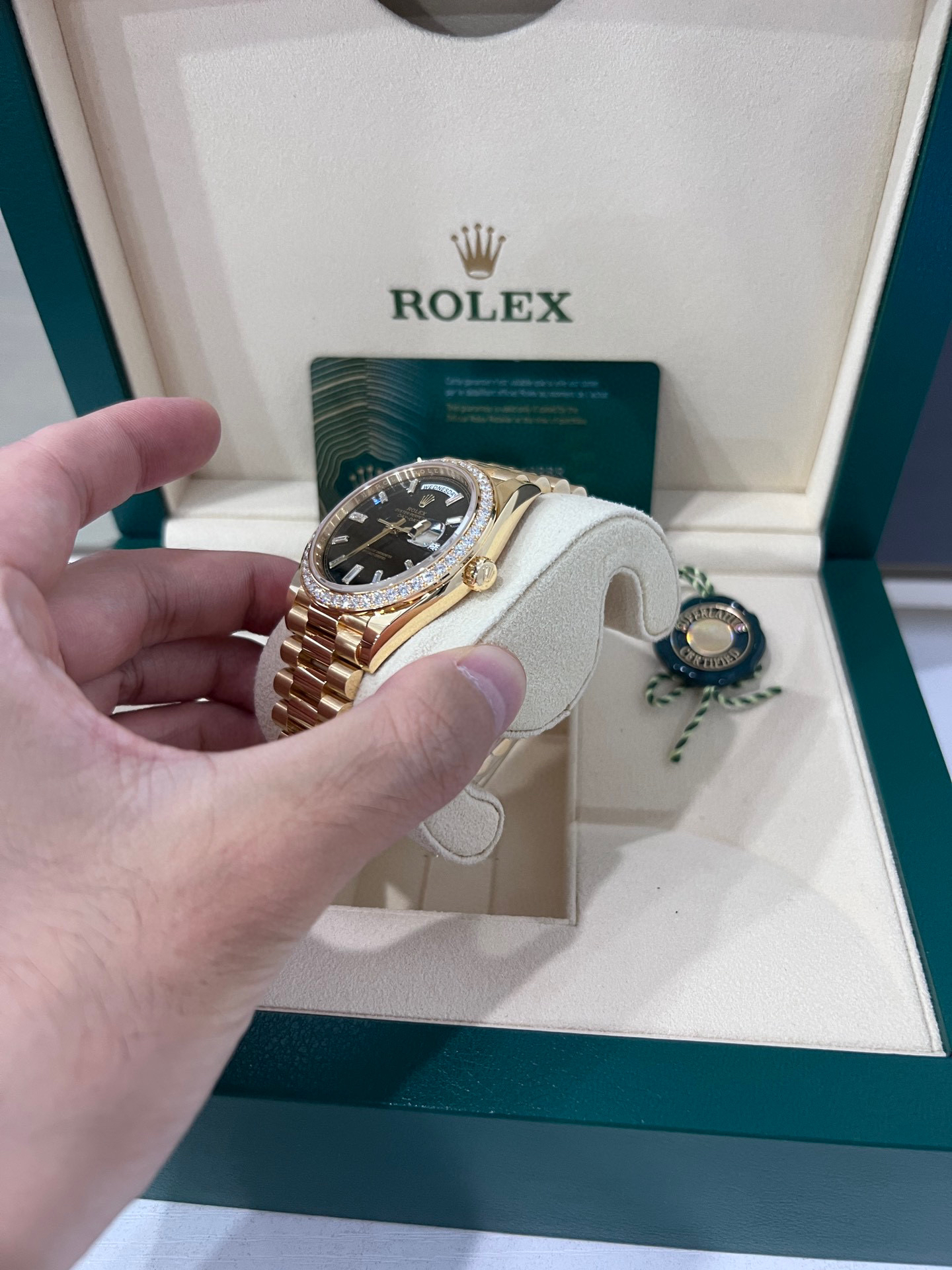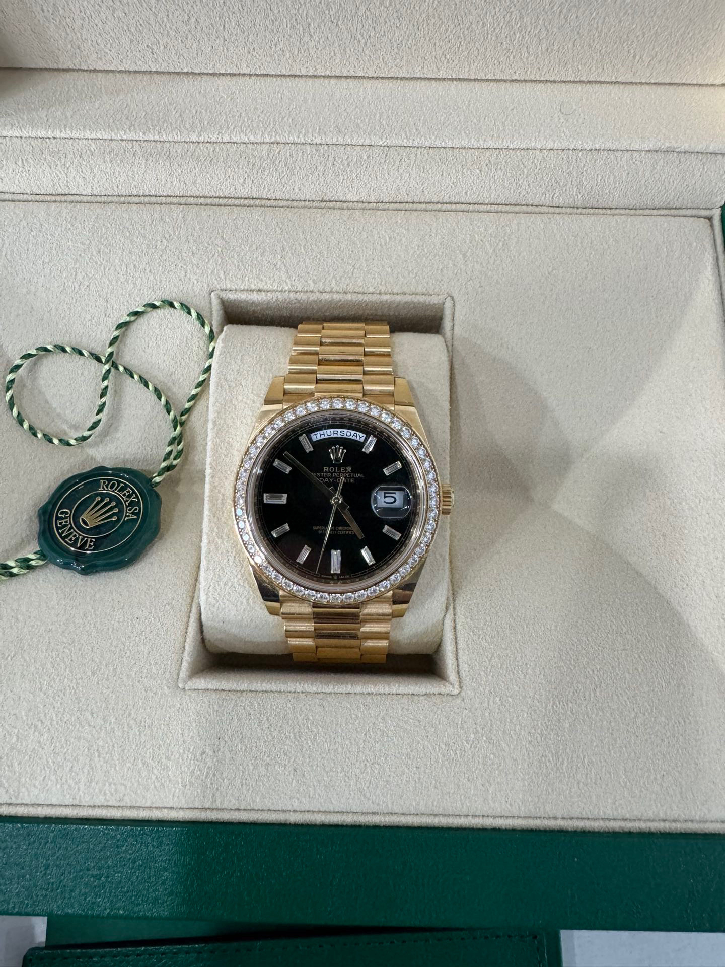 NOOB Factory新力作V2升级版 劳力士Rolex星期日志型40mm 搭载原版3255自动机械机芯228239系列腕表,40毫米直径,研发耗时16个月!原版1比1开模。重点升级了以下几个要点:1.表壳直径与2019最新版3255型系列一致40毫米。2.表带头粒与原装一致,5件拼装,难度非常高,表带与表壳交错型无缝连结。3.把头皇冠处下方修改为与原版一致的两个圆点。4.表扣与原版一致里面加装了弹簧,字体大小工艺和原装一致。5.表壳侧面与原版一致增加二维码防伪、底盖有验货二维码。6.表壳与表带连接处的壳身刻有与原版一致的型号数字228239。7.表的内影圈刻上了与保修卡一致的产品流水数字,而且做到了正品一致的一表一卡一码 绝不重复)8.附全套原版套装配置包括(保修卡,说明书,型号条型码与正品一致)全套包装与正品一致(市面上真正的原装一比一星期日历型)