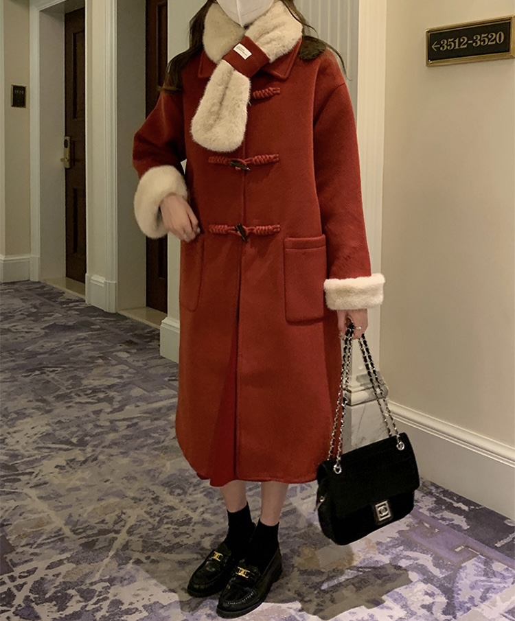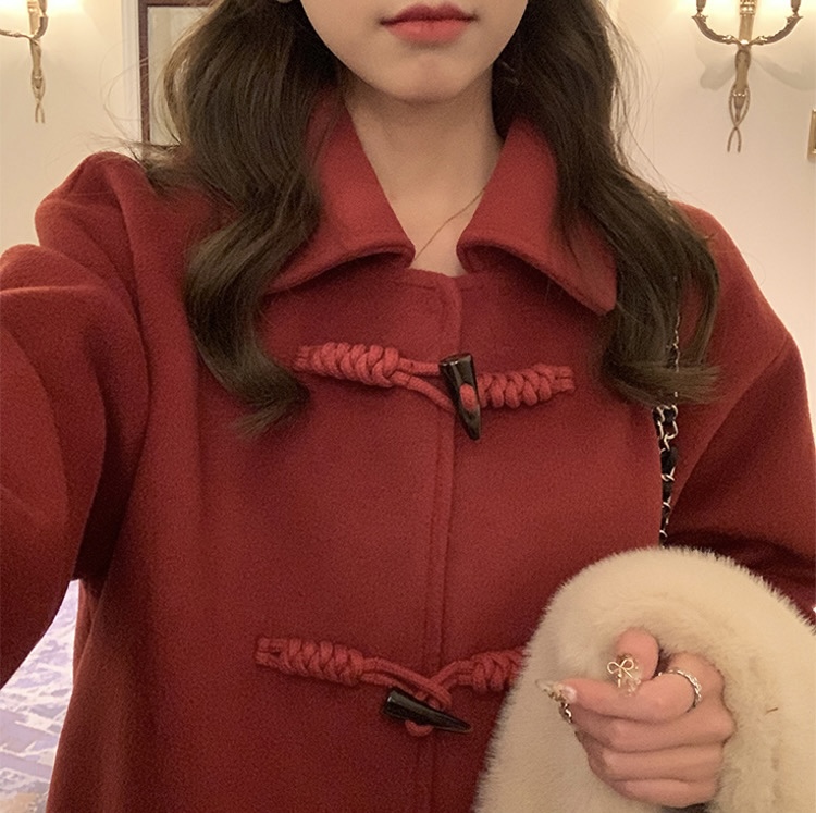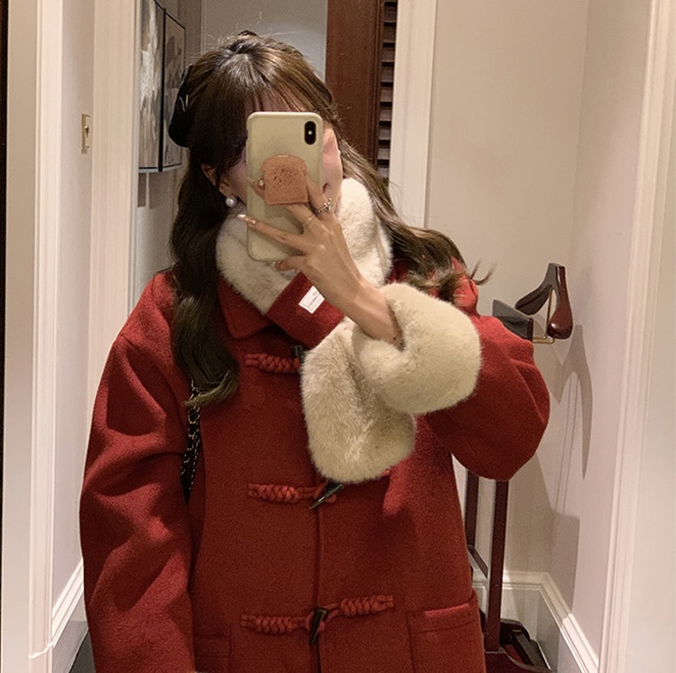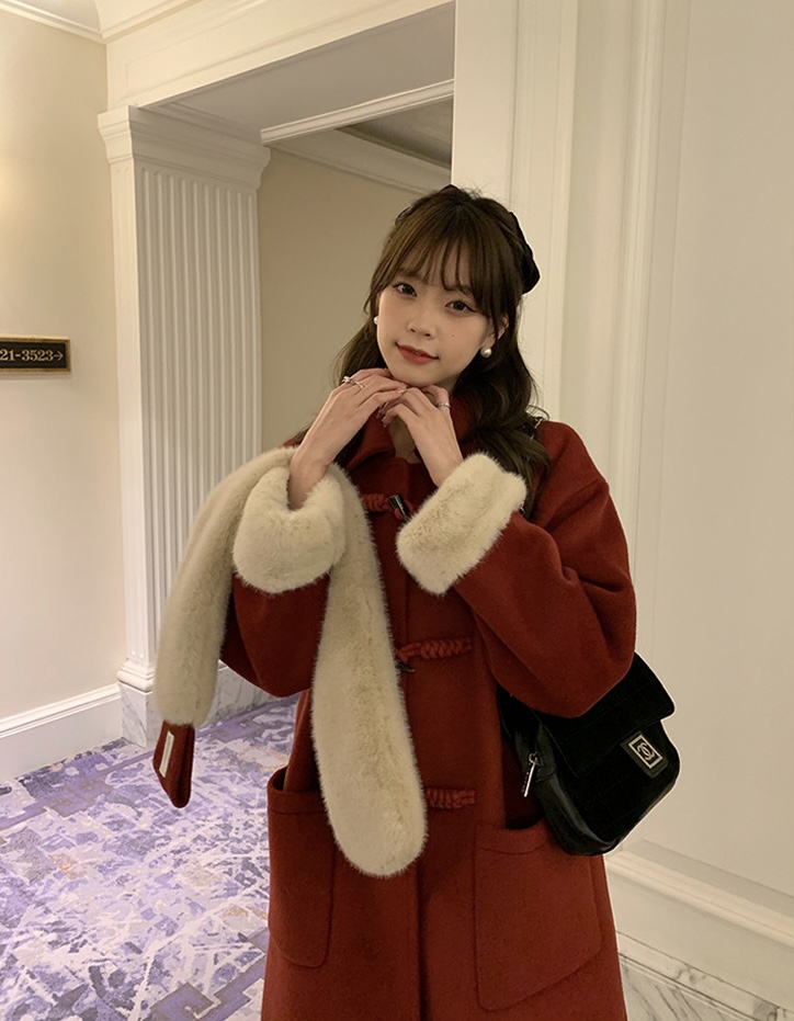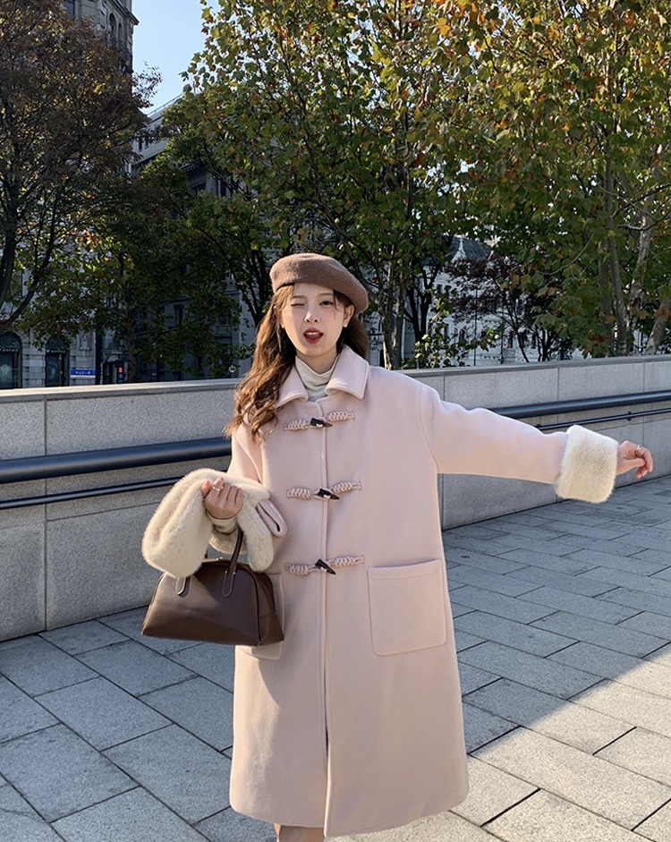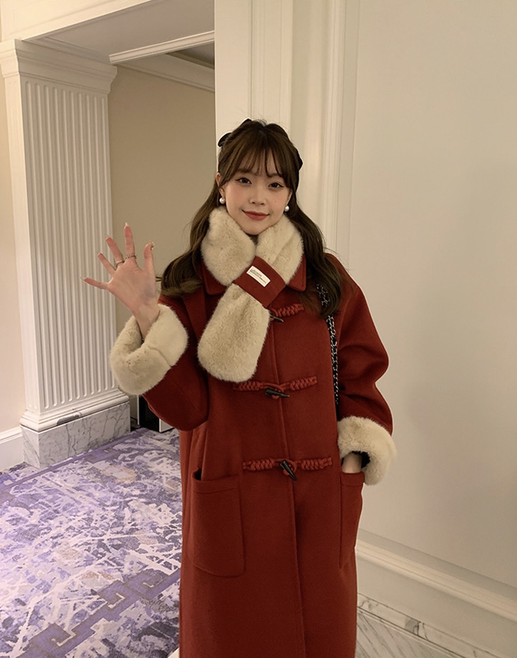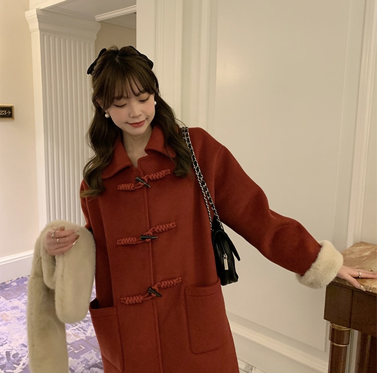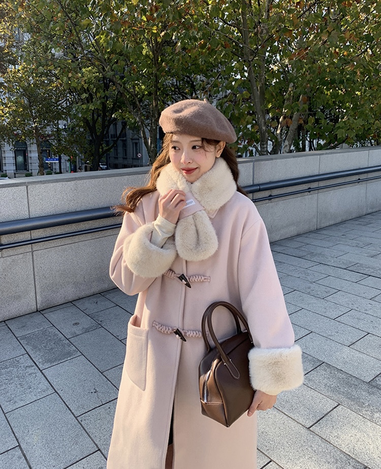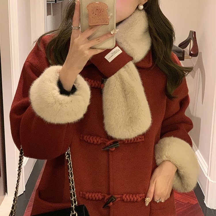 【GZ】无忧购韩系温柔宽松显瘦中长款围巾牛角扣加绒毛呢大衣9020# (截单后7天发货)25年清仓捡漏