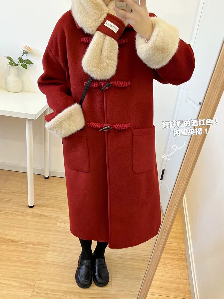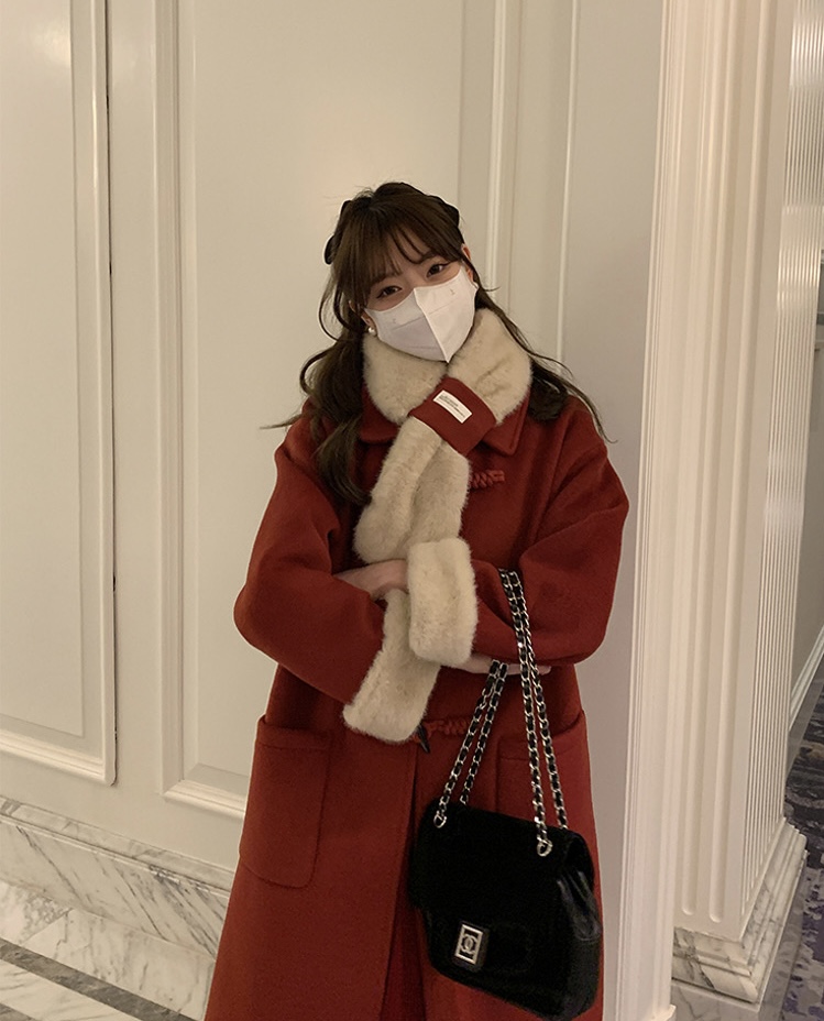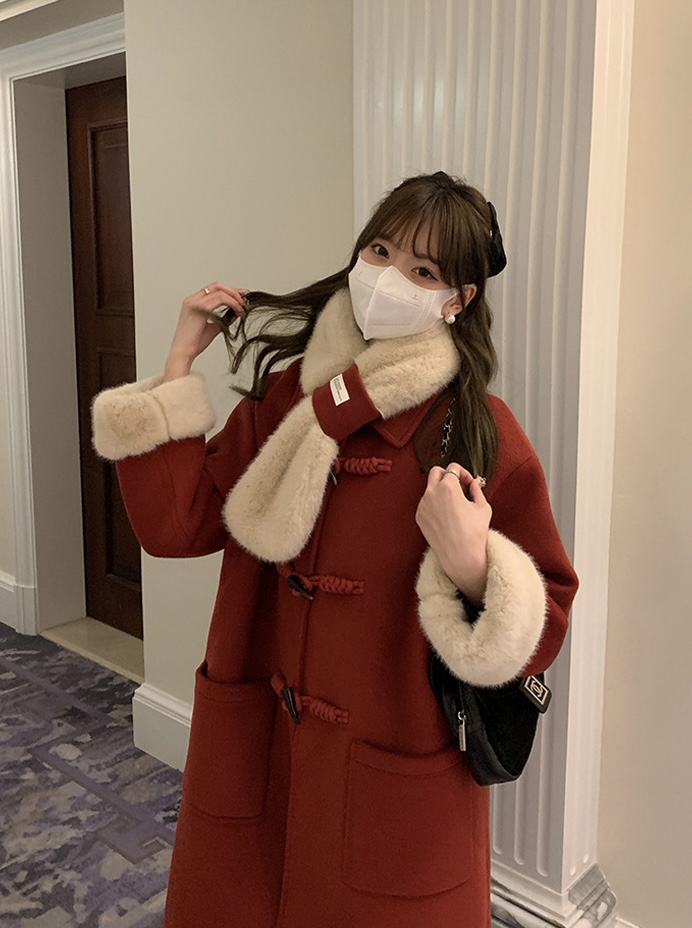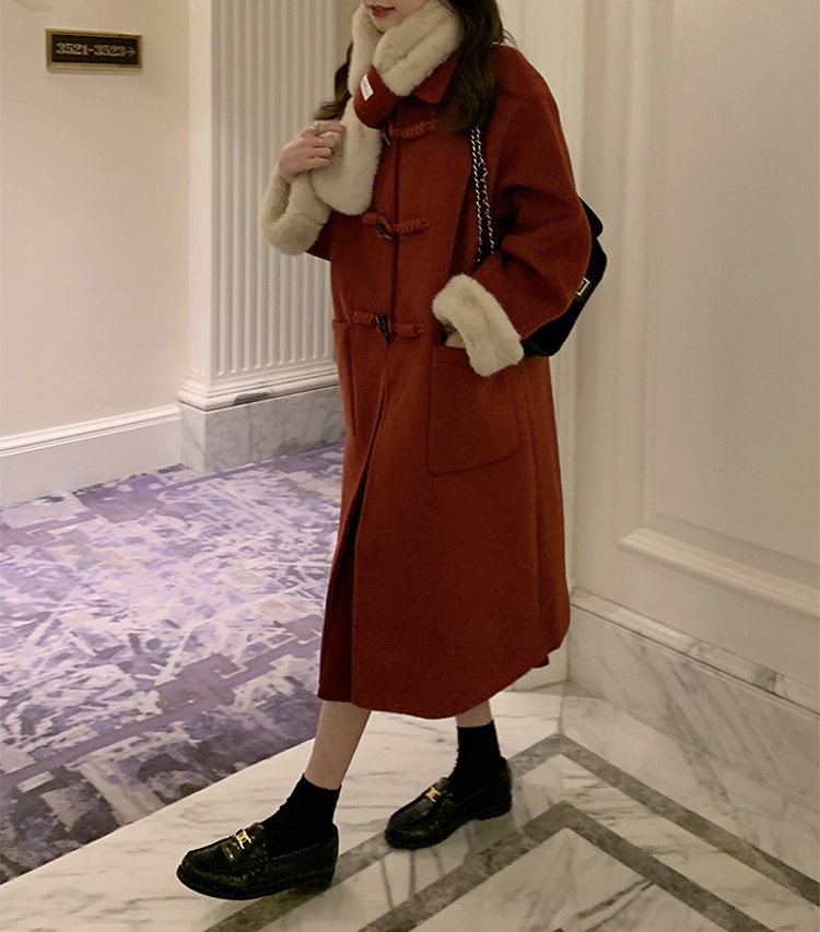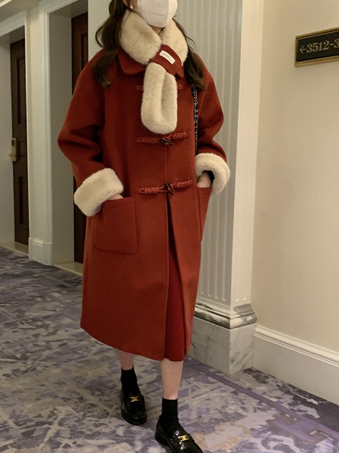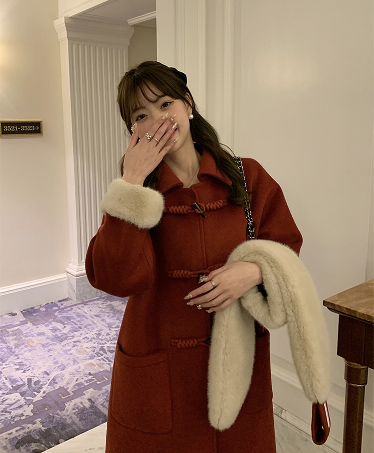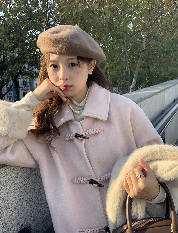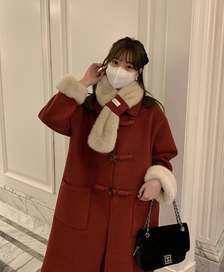 【GZ】无忧购韩系温柔宽松显瘦中长款围巾牛角扣加绒毛呢大衣9020# (截单后7天发货)25年清仓捡漏