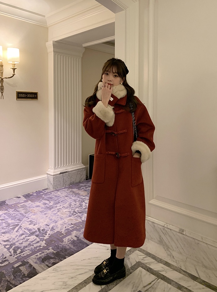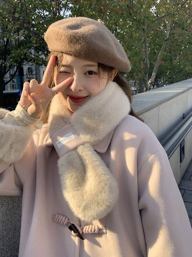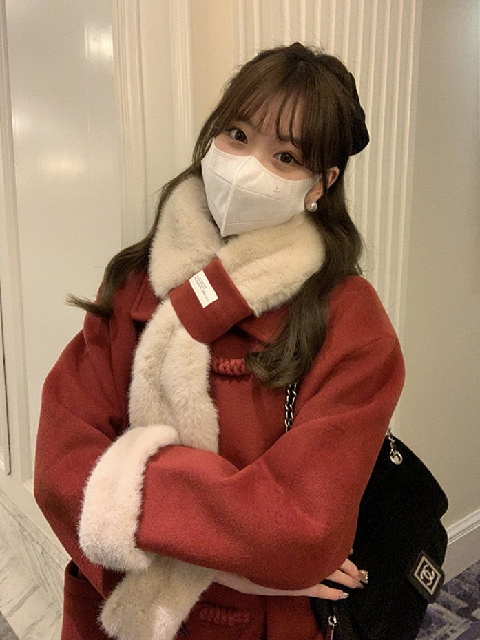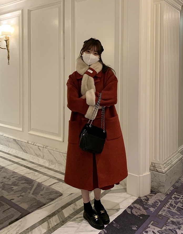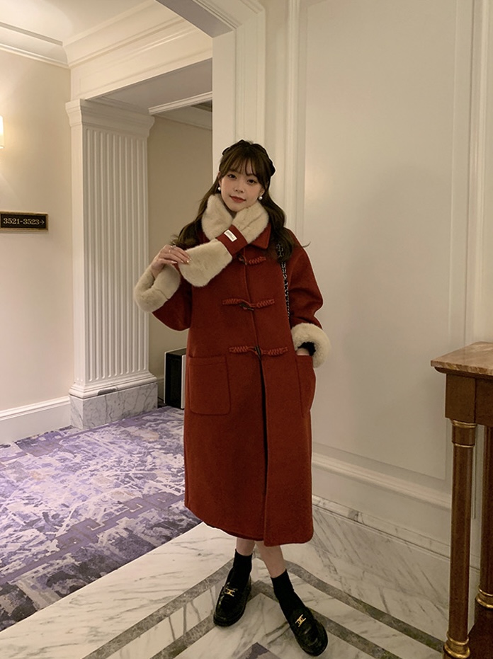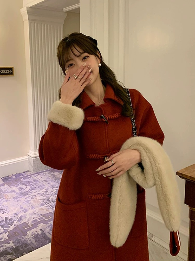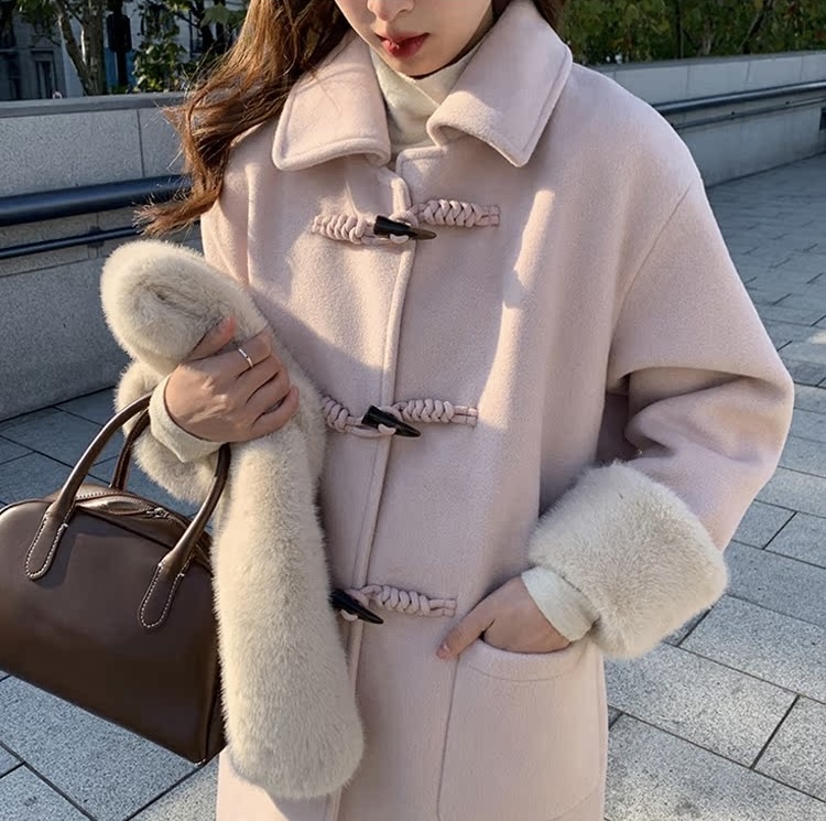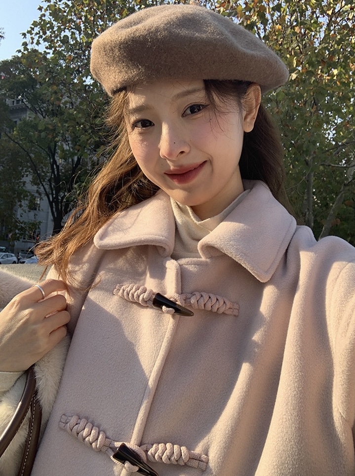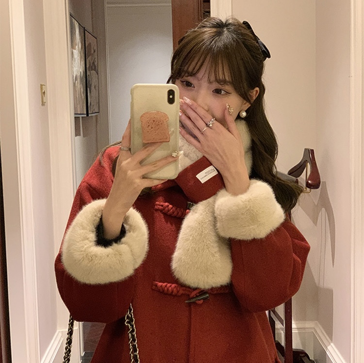 【GZ】无忧购韩系温柔宽松显瘦中长款围巾牛角扣加绒毛呢大衣9020# (截单后7天发货)25年清仓捡漏