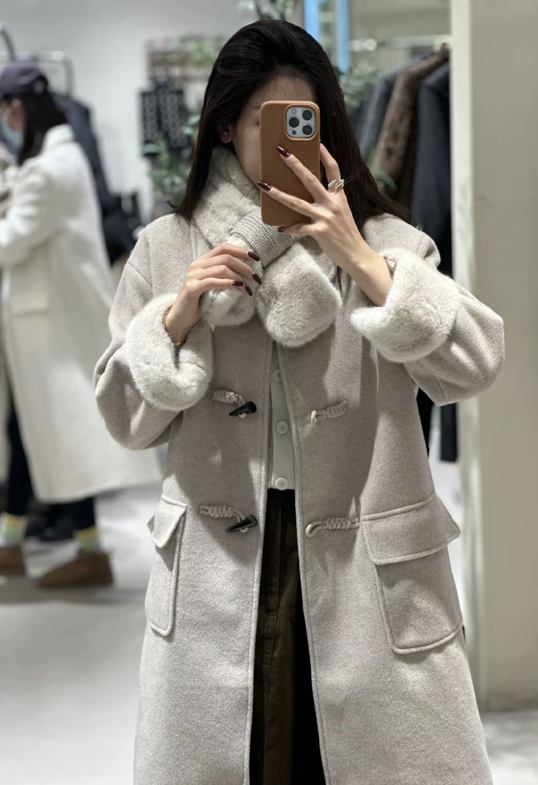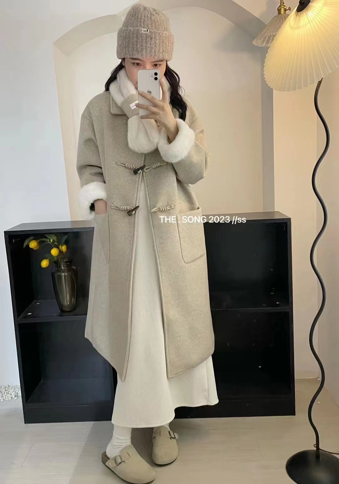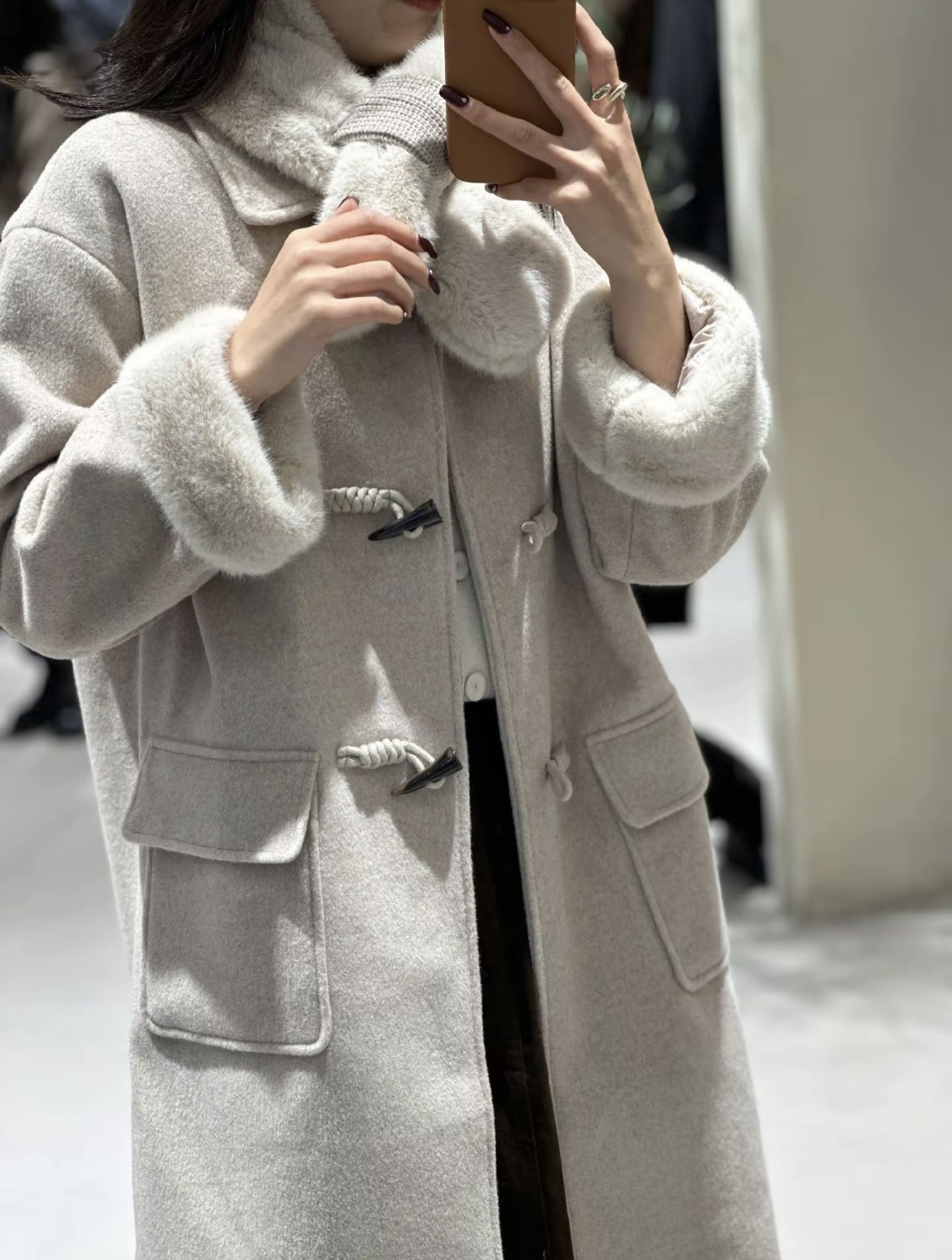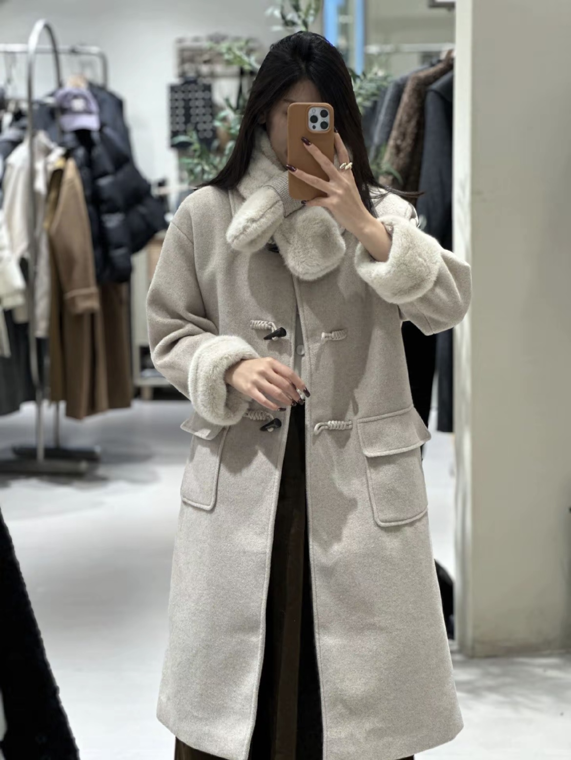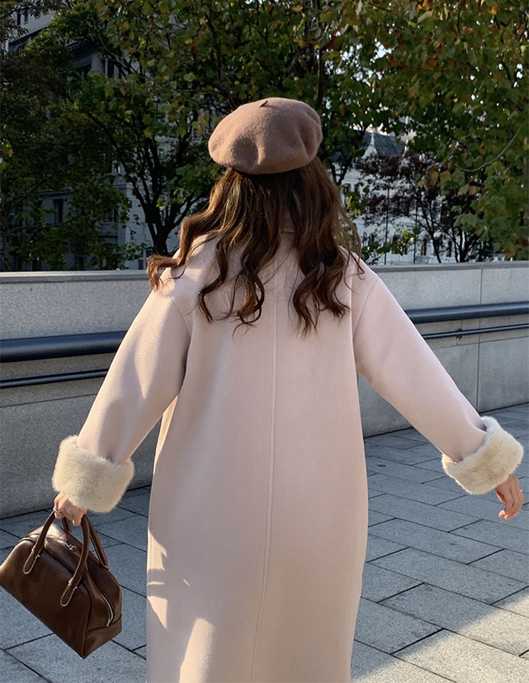 【GZ】无忧购韩系温柔宽松显瘦中长款围巾牛角扣加绒毛呢大衣9020# (截单后7天发货)25年清仓捡漏