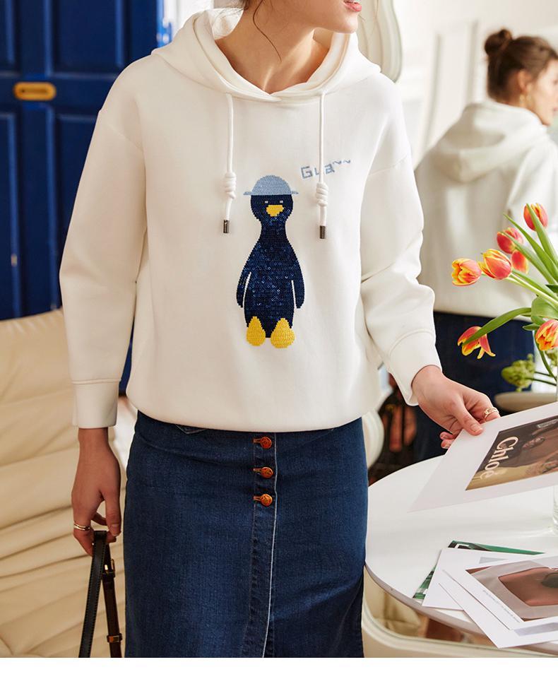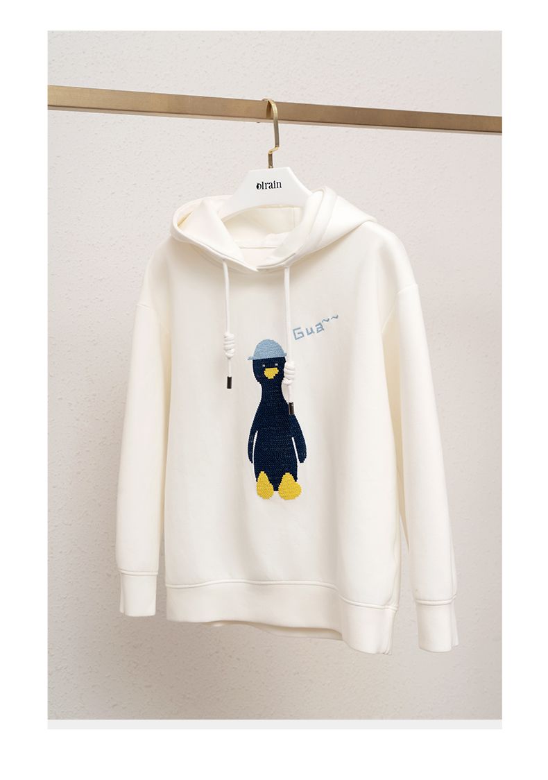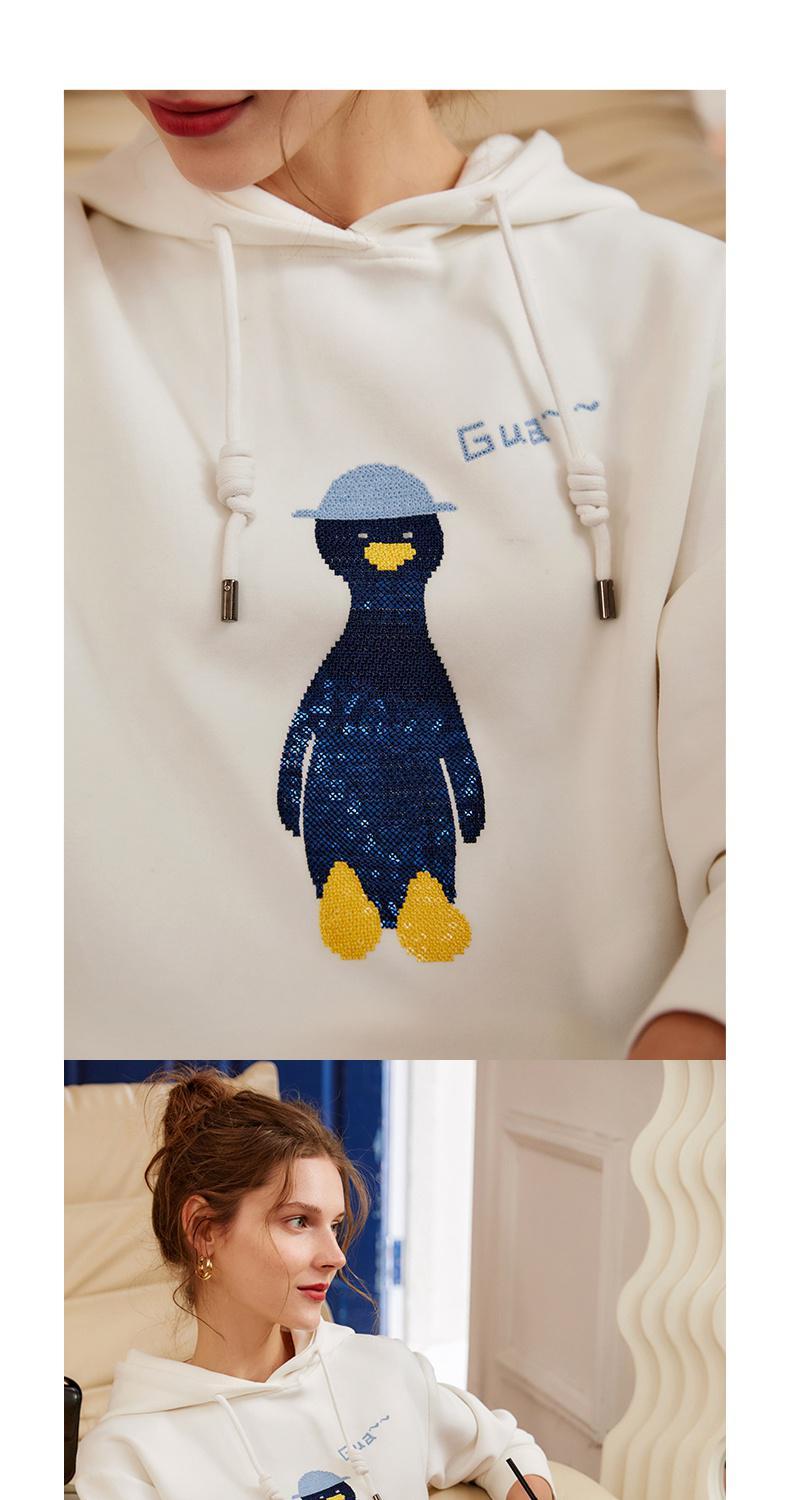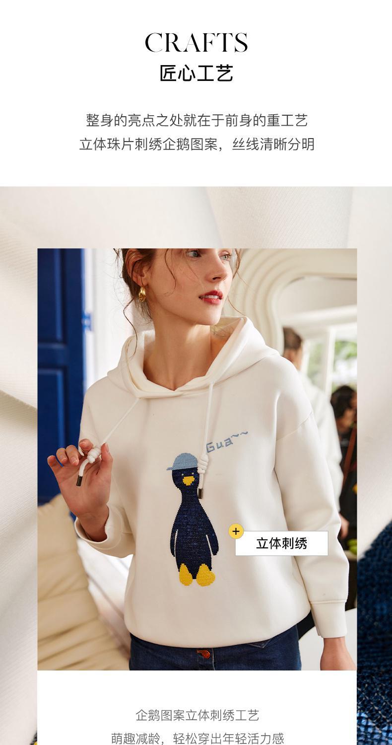 欧芮儿连帽卫衣女春季2022年新款重工企鹅刺绣休闲减龄百搭上衣