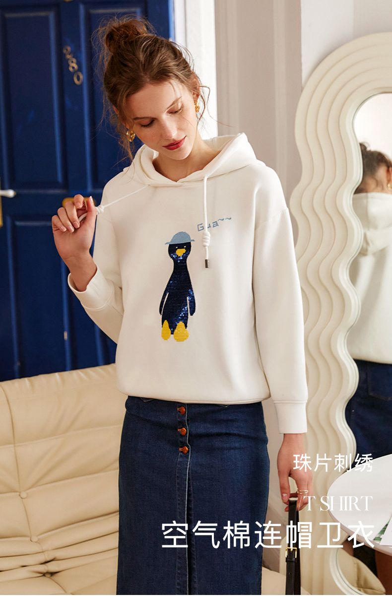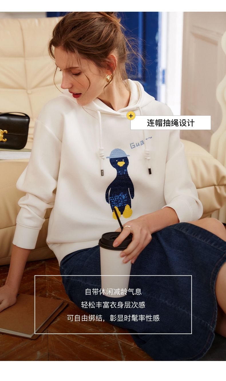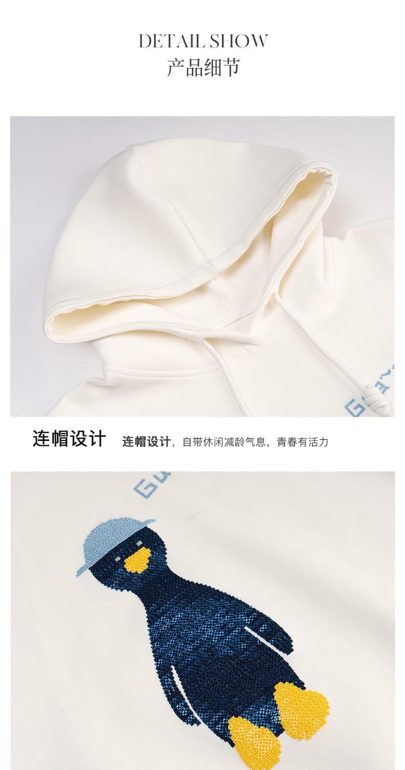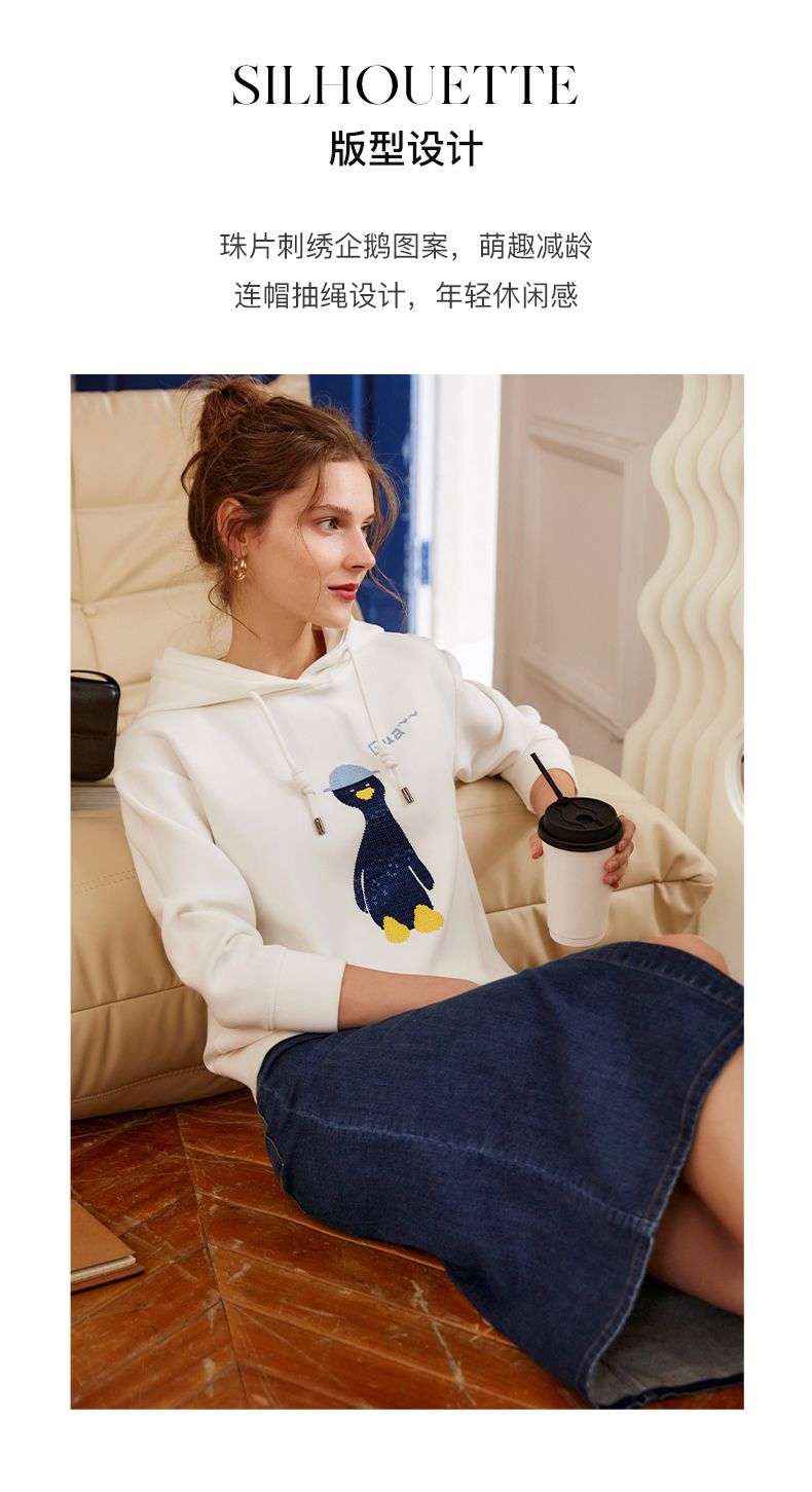 欧芮儿连帽卫衣女春季2022年新款重工企鹅刺绣休闲减龄百搭上衣