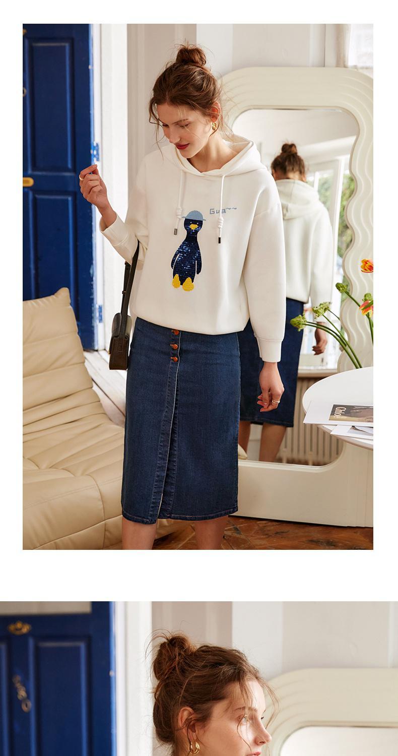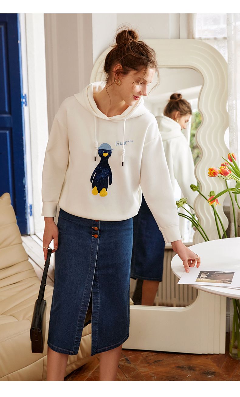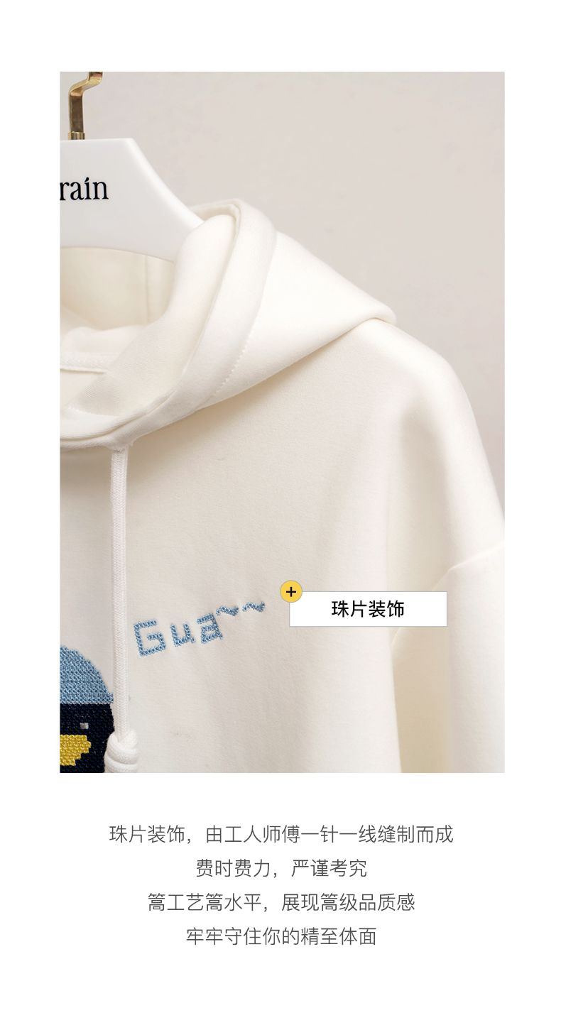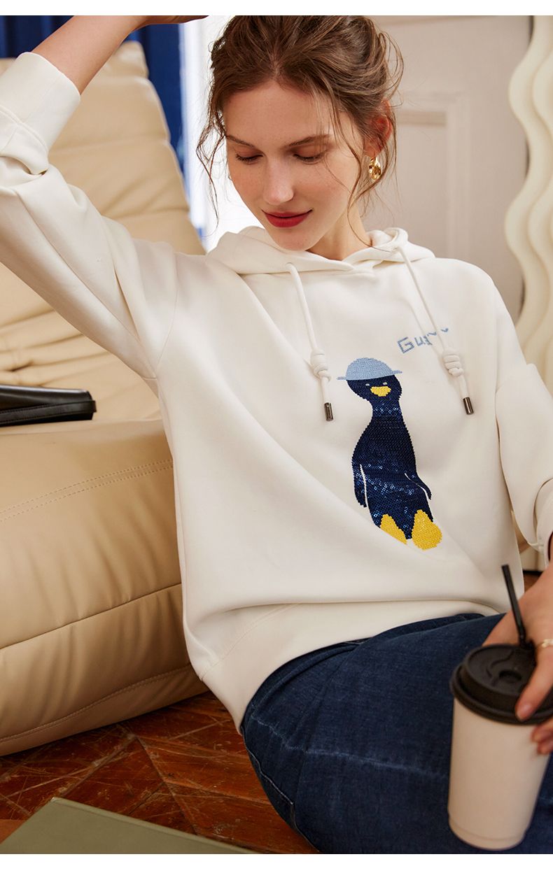 欧芮儿连帽卫衣女春季2022年新款重工企鹅刺绣休闲减龄百搭上衣