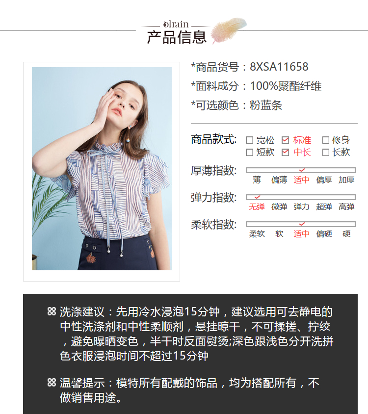“精致”是欧芮儿olrain品牌文化的核心,欧芮儿认为,精致的女人,不但要外在动人,更要内在迷人,内外兼修,有魅力、有气质、有内涵,自信而不自傲,优雅而不矫揉,自有万种风情而不轻浮,更不故作矜持。
