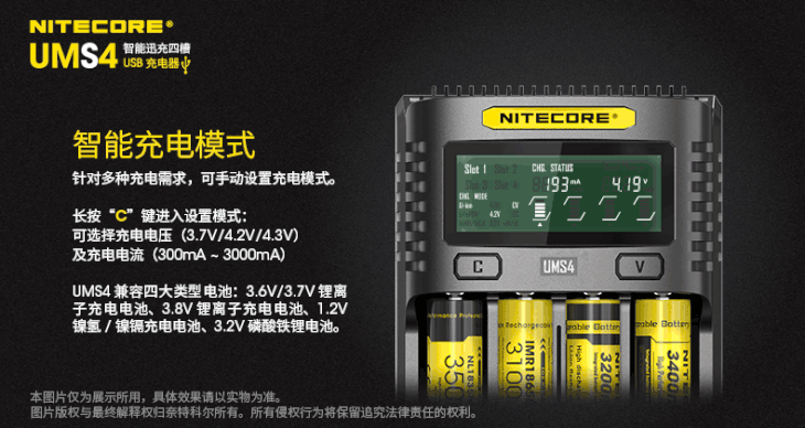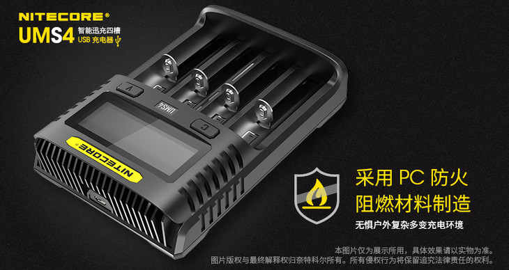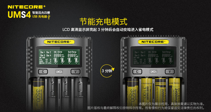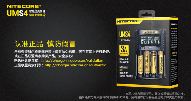 NITECORE奈特科尔UMS4智能快充USB四槽QC高电流18650充电器