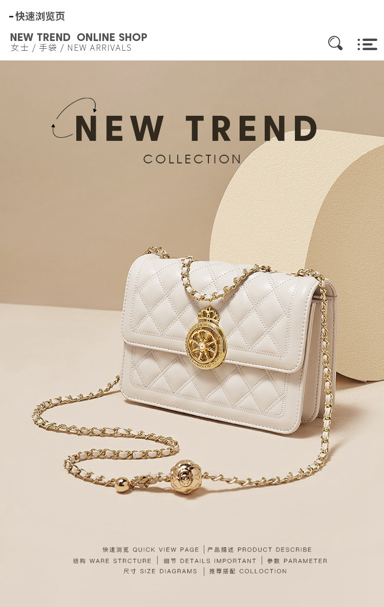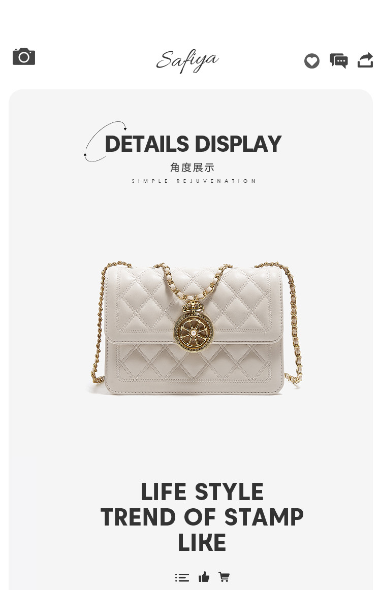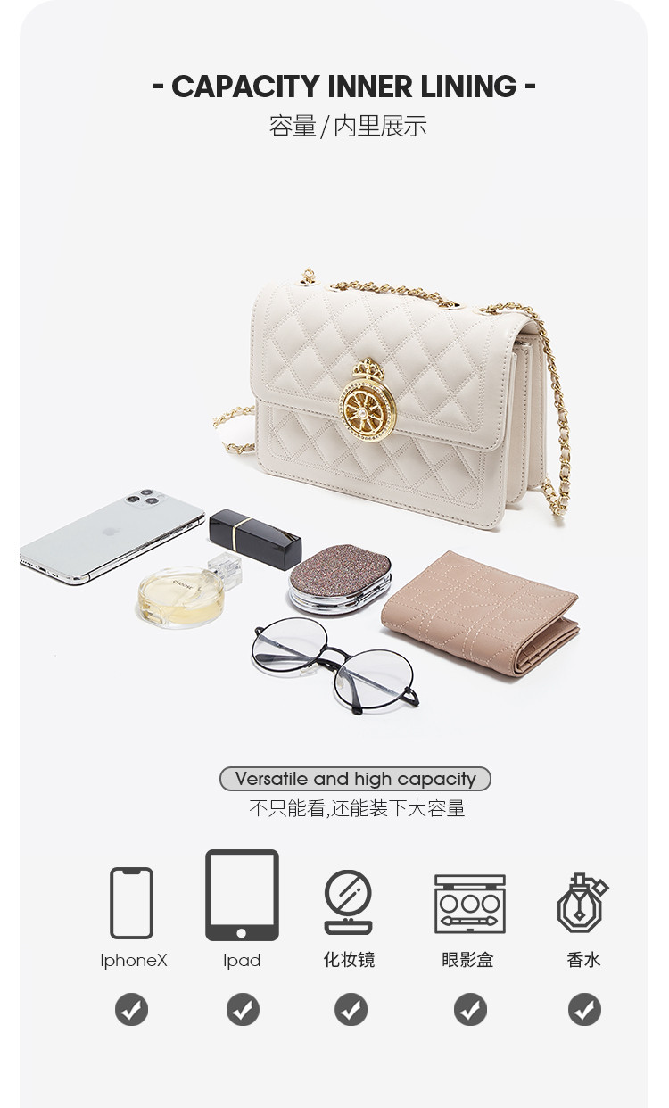 【立减30元】Safiya/索菲娅二层牛皮2022新款菱格包链条包单肩包女斜挎包女包 SF953015Y
